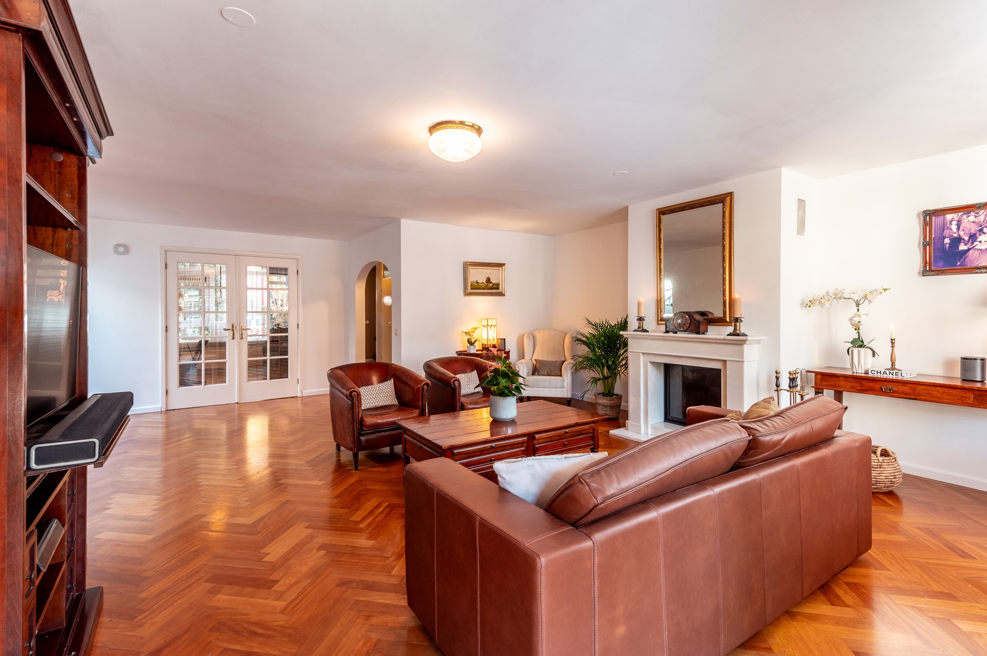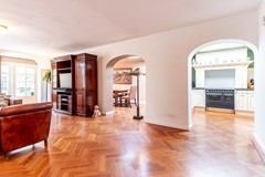 De woonkamer is ruim en sfeervol. Dankzij grote raampartijen en de open haard voelt deze ruimte direct warm en uitnodigend. De afwerking is verzorgd en neutraal, waardoor je de ruimte gemakkelijk naar eigen smaak kunt inrichten.