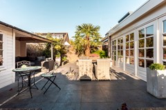 De woning staat op een mooi perceel en beschikt over een verzorgde tuin op het zuidwesten. Dankzij de hoekligging biedt de tuin veel privacy en meerdere knusse zitplekken om op elk moment van de dag van de zon te kunnen genieten. De tuin is bereikbaar via de zijkant van de woning, via twee openslaande deuren aan de kopse kant én via een achterom. Een heerlijke plek om te ontspannen, te tuinieren of met vrienden te borrelen.