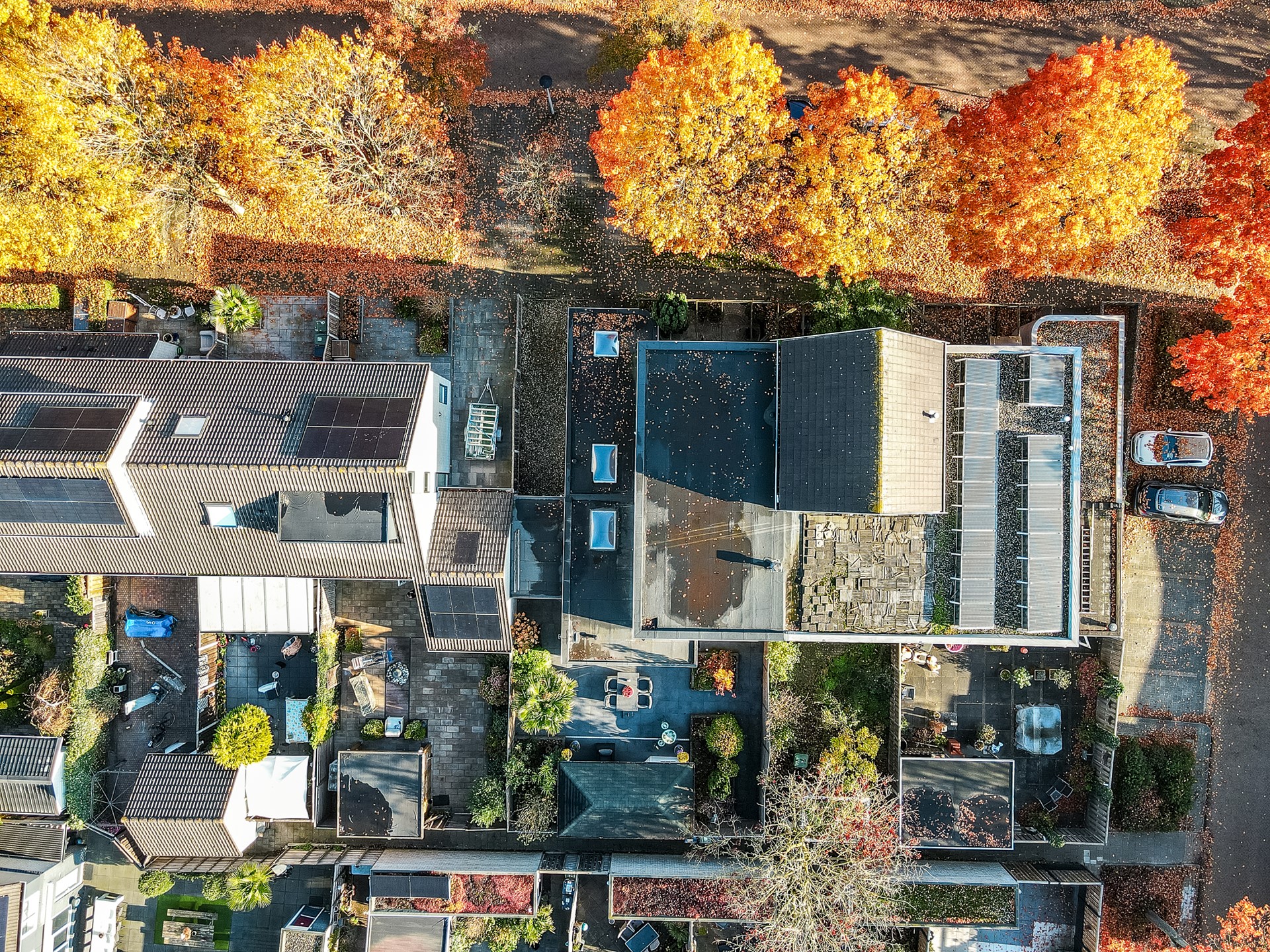 Aan de voorzijde is ruimte om twee auto’s op eigen terrein te parkeren, waardoor je altijd verzekerd bent van een plek direct bij de woning.