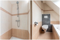 - Keurige badkamer met ligbad, douche, toilet en wastafelmeubel