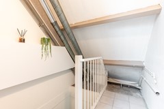 De tweede verdieping biedt een ruime zolderkamer met dakramen die zorgen voor veel lichtinval. Hier bevindt zich ook de wasmachineaansluiting. Deze verdieping is ideaal als vierde slaapkamer, werkruimte of hobbykamer.