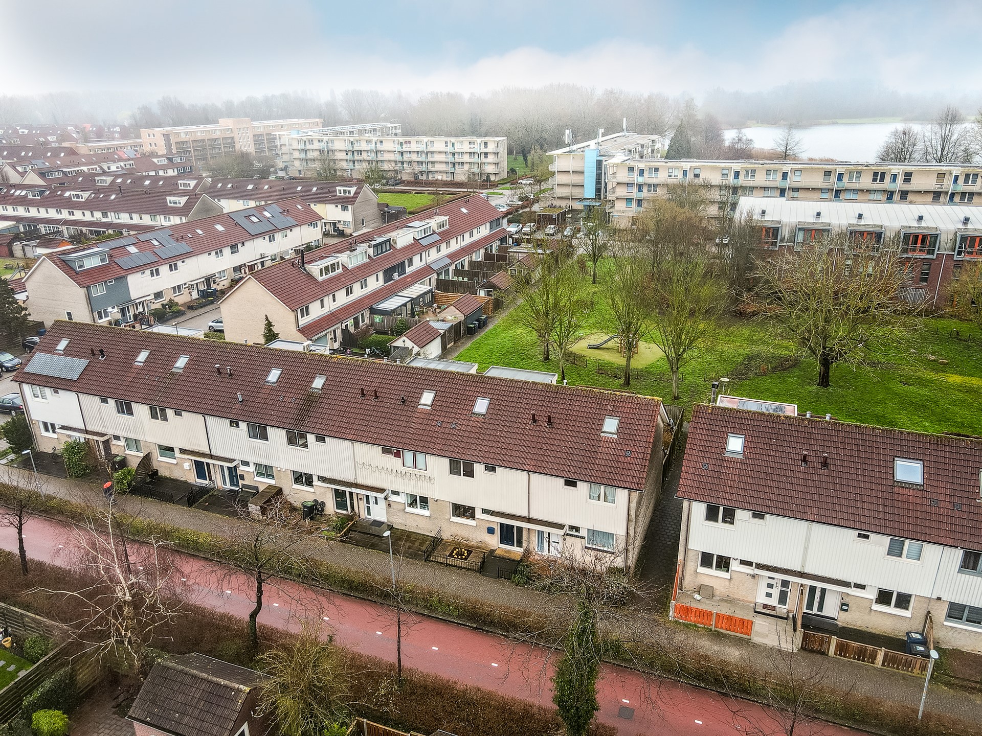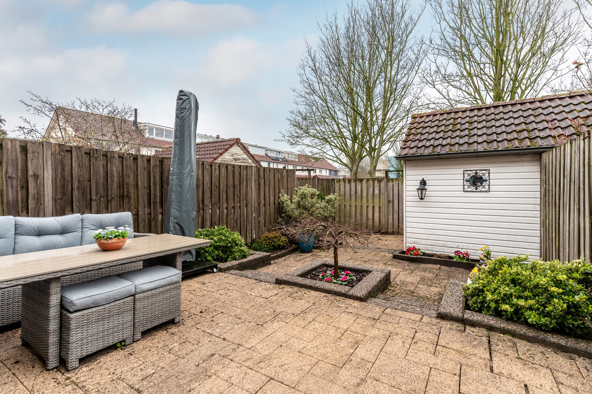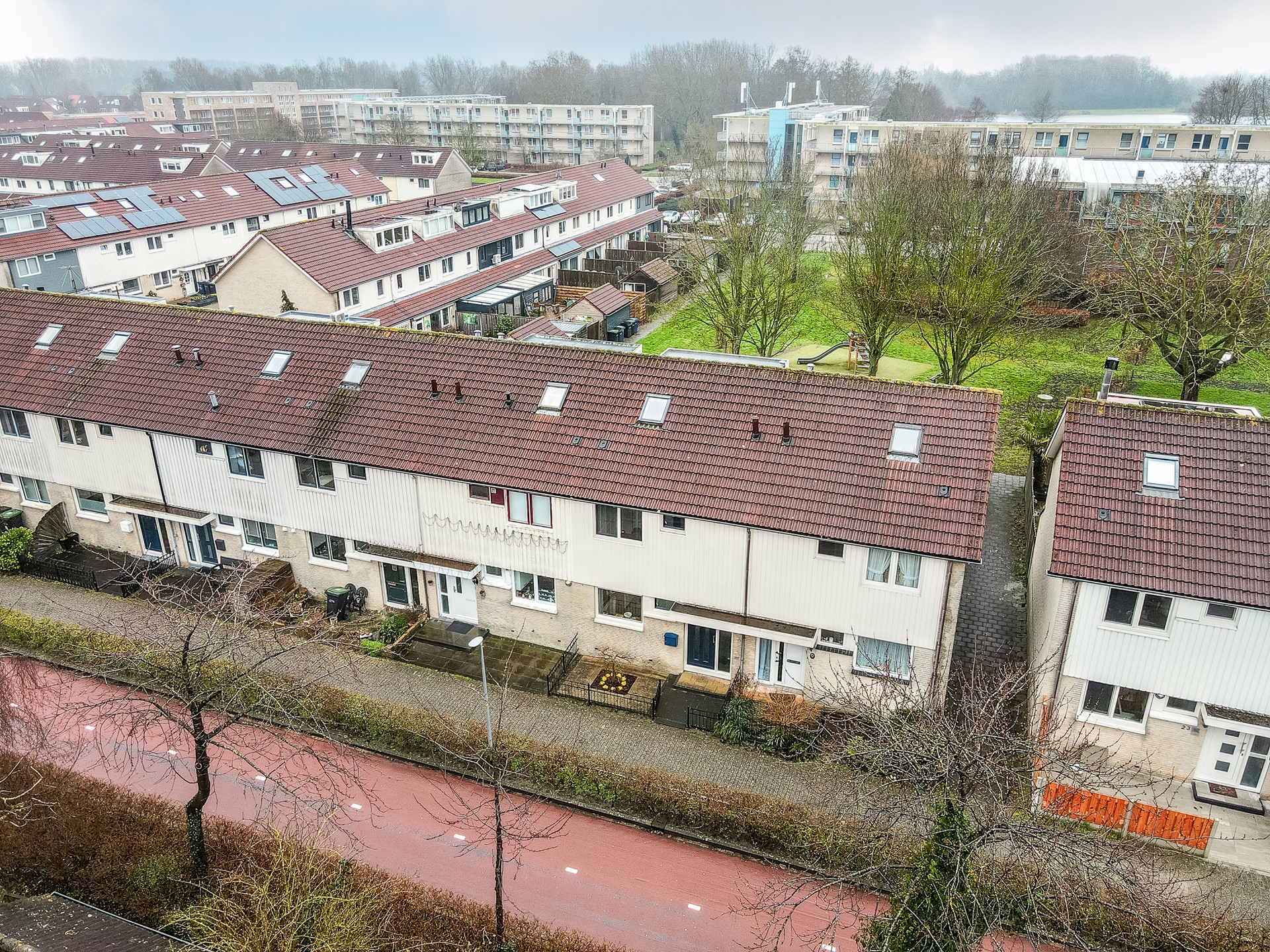 Wat deze woning extra bijzonder maakt, is de ligging aan de achterzijde. Vanuit de tuin kijk je uit op een gezellig speelveld met groen en speeltoestellen. Stel je voor: een zonnige middag, de barbecue aan, vrienden of familie op bezoek en de tuindeur open. Terwijl jij ontspannen in de tuin zit, lopen de kinderen zo het speelveld op om te spelen. Dat is het ultieme buitenleven voor een gezin.