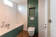 De badkamer is royaal opgezet.Hier vind je een comfortabel ligbad, een aparte ruime douche, een toilet en een fraai wasmeubel. De badkamer is volledig gerenoveerd in 2023, en beschikt over vloerverwarming.