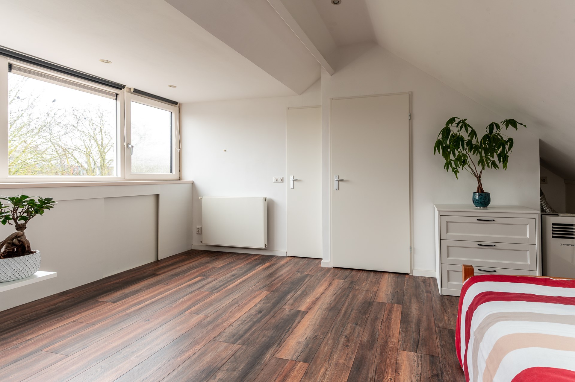 De tweede verdieping is een volwaardige woonlaag, waardoor deze als slaapkamer, logeerkamer, werkkamer, of hobbyruimte gebruikt kan worden. Deze ruimte is in 2020 volledig gerenoveerd inclusief dakisolatie en beschikt over een nieuwe vloer, strak stucwerk, mobiele airconditioning, een designradiator, en stijlvolle inbouwspots.Aan de voorzijde zorgt een dakraam voor prettig daglicht, terwijl aan de achterzijde een grote dakkapel met kunststof kozijnen voor extra ruimte en licht zorgt. In 2020 zijn alle kozijnen en ramen op deze verdieping vervangen, waarbij HR++ beglazing met kunststof kozijnen in zowel de dakkapel als het dakraam zijn geplaatst. Op deze verdieping vind je tevens de aansluiting voor de wasmachine, een handige berging voor extra opslag en praktische knieschotten voor nog meer bergruimte.