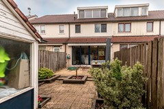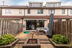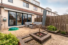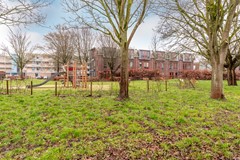 De achtertuin is gelegen op het Zuid-Oosten, waardoor je hier al vroeg in de ochtend en gedurende de gehele dag van de zon kunt genieten. De tuin grenst direct aan het speelveld met hoge bomen, waardoor het uitzicht vrij en groen blijft. Via de poort sta je zo op het grasveld waar kinderen heerlijk kunnen spelen.