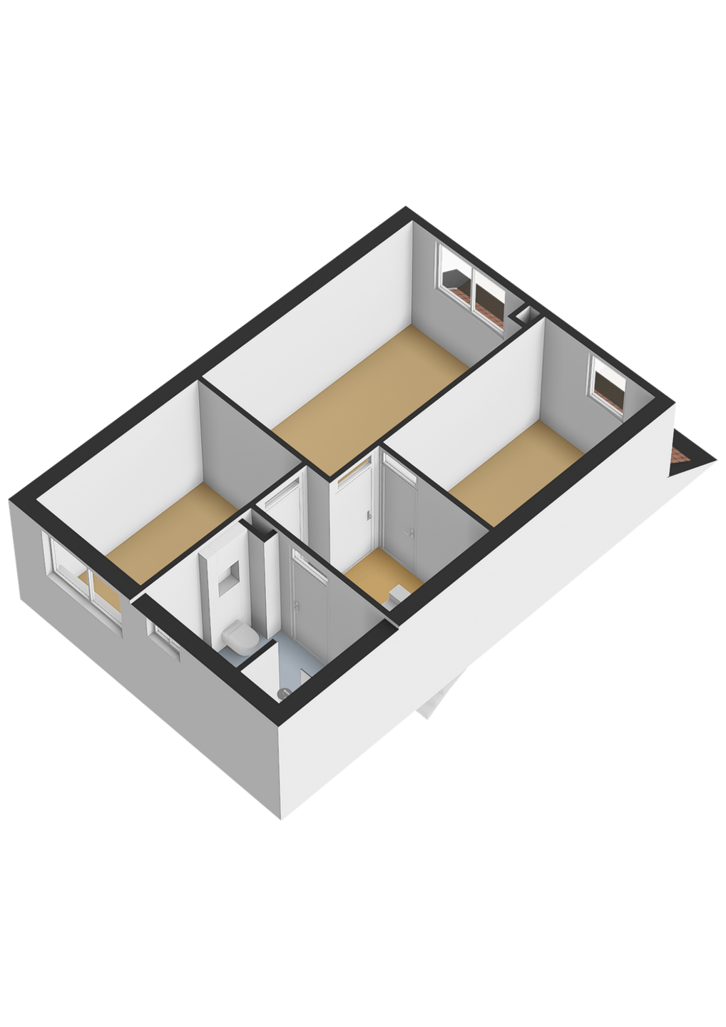 Op de eerste verdieping bevinden zich drie goed bemeten slaapkamers. Deze verdieping is praktisch ingedeeld en biedt voldoende ruimte voor een gezin, een thuiswerkplek of hobbykamer.