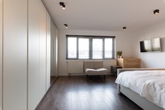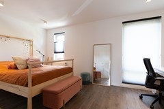 - Twee slaapkamers op de tweede verdieping met strak stucwerk, laminaatvloer en inbouw spots