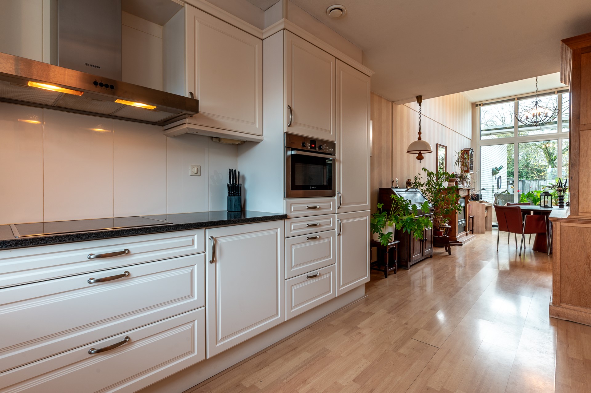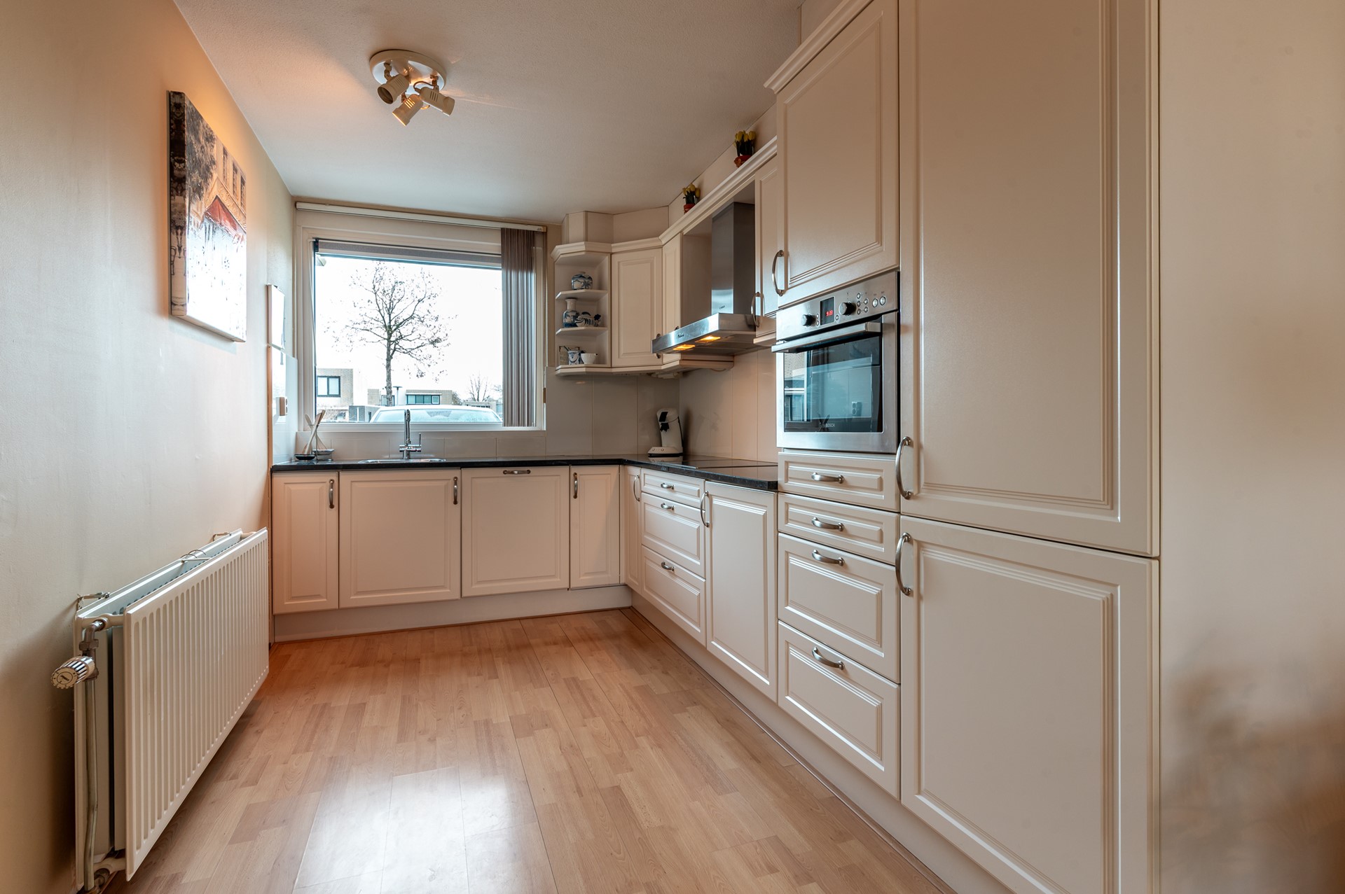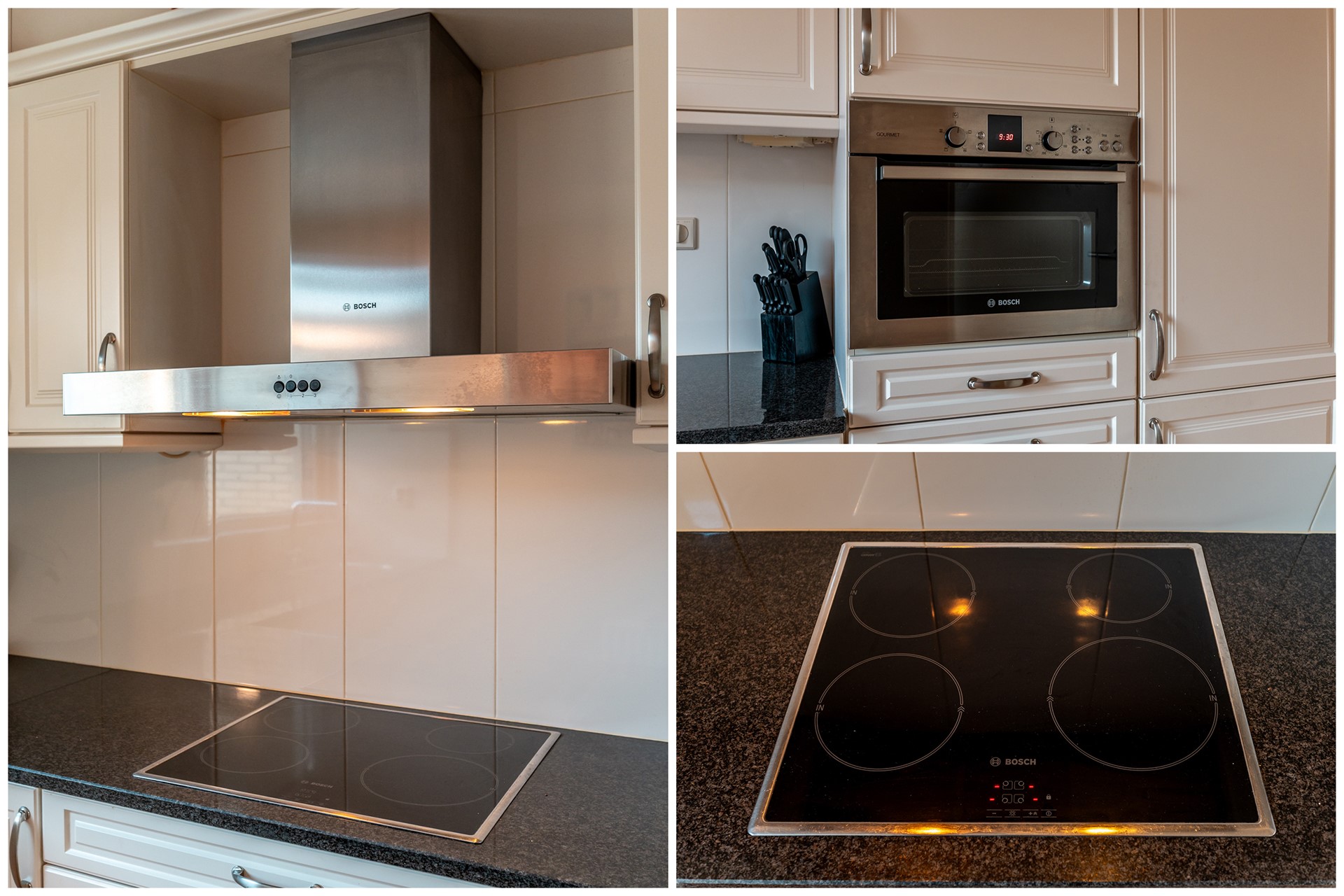 Via de entree kom je binnen in de ruime hal, van waaruit alle vertrekken toegankelijk zijn. Aan de voorzijde bevindt zich de L-vormige open keuken, voorzien van een kookplaat, afzuigkap, koelkast, vriezer en vaatwasser.