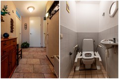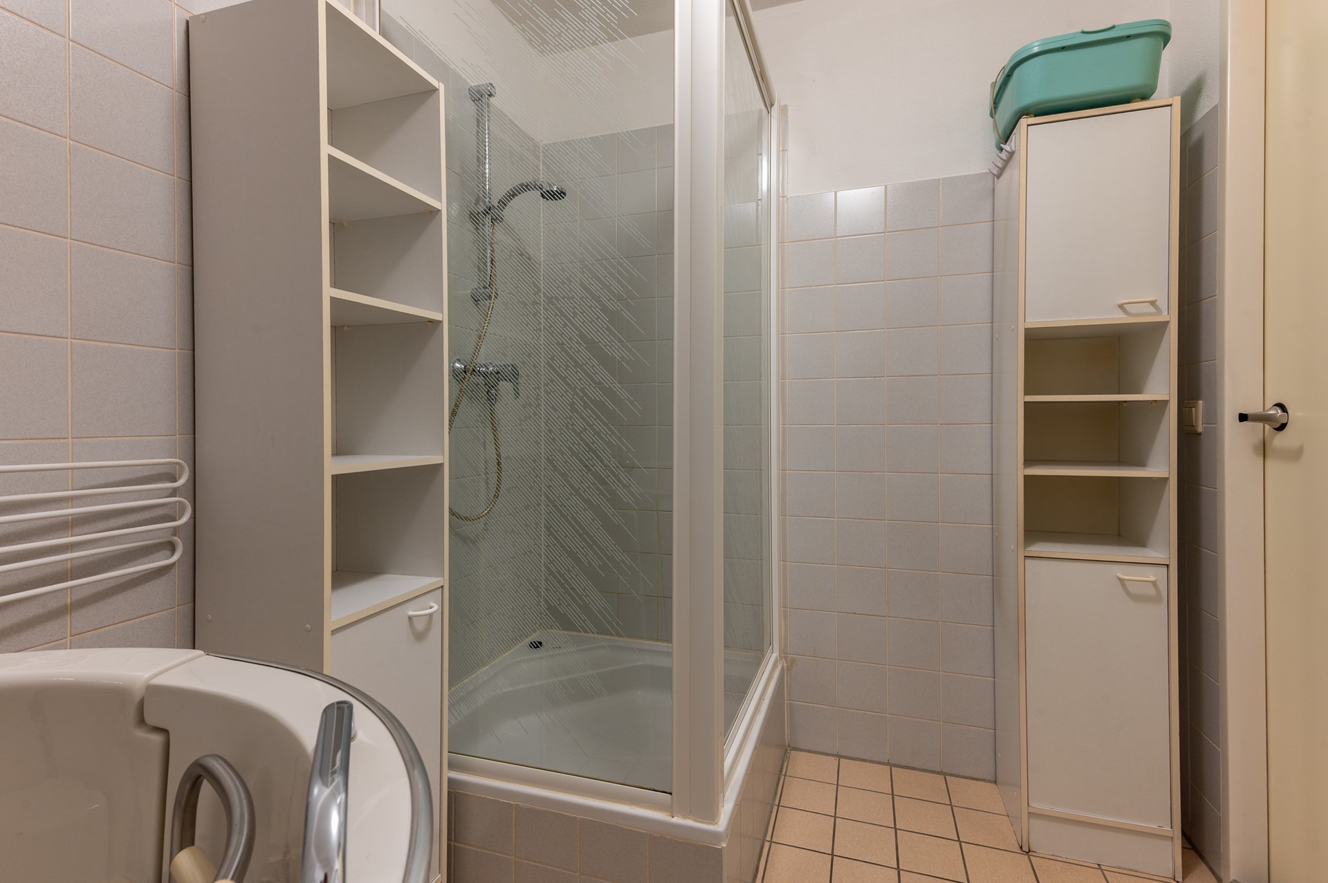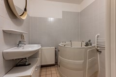 De badkamer is uitgerust met een zitbad en wastafelmeubel. Het zitbad is ideaal wanneer iemand hulpbehoevend is of extra comfort nodig heeft. Daarnaast is er een apart toilet aanwezig. In de hal bevindt zich tevens een wasruimte met extra opbergruimte.