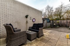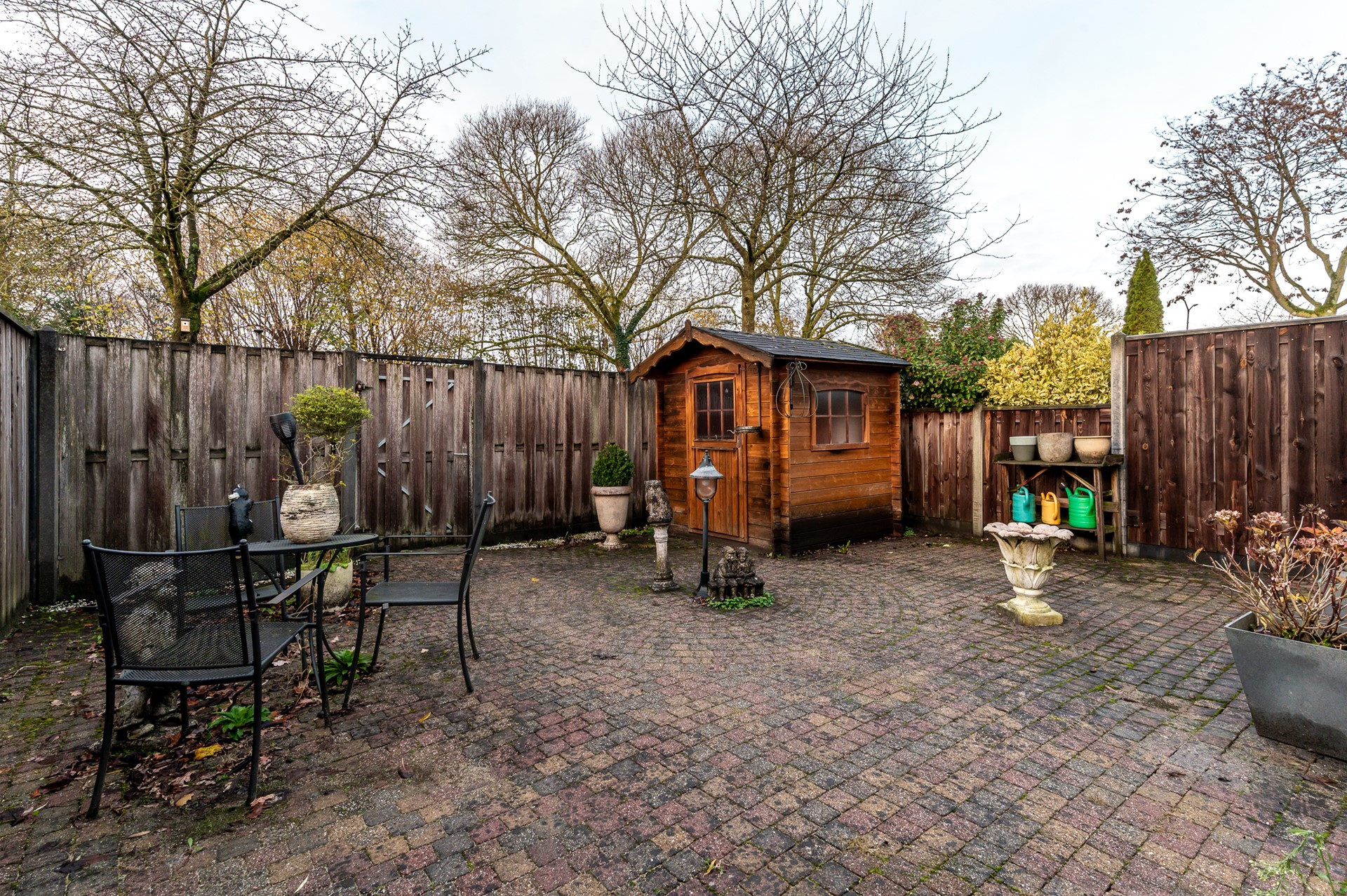 Achter de woning ligt een zonnige en vrij gelegen tuin op het zuidwesten, waar je in alle rust kunt genieten van het buitenleven. De tuin beschikt over een achterom en een separate berging die alleen van buitenaf toegankelijk is, ideaal voor fietsen, tuingereedschap of opslag.