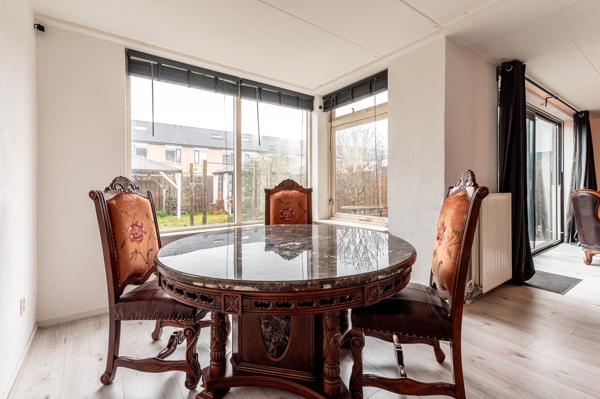 Grenzend aan de woonkamer bevindt zich de eetkamer van circa 10 m². Deze ruimte is multifunctioneel en kan naast eetkamer ook perfect dienen als werk- of speelkamer.