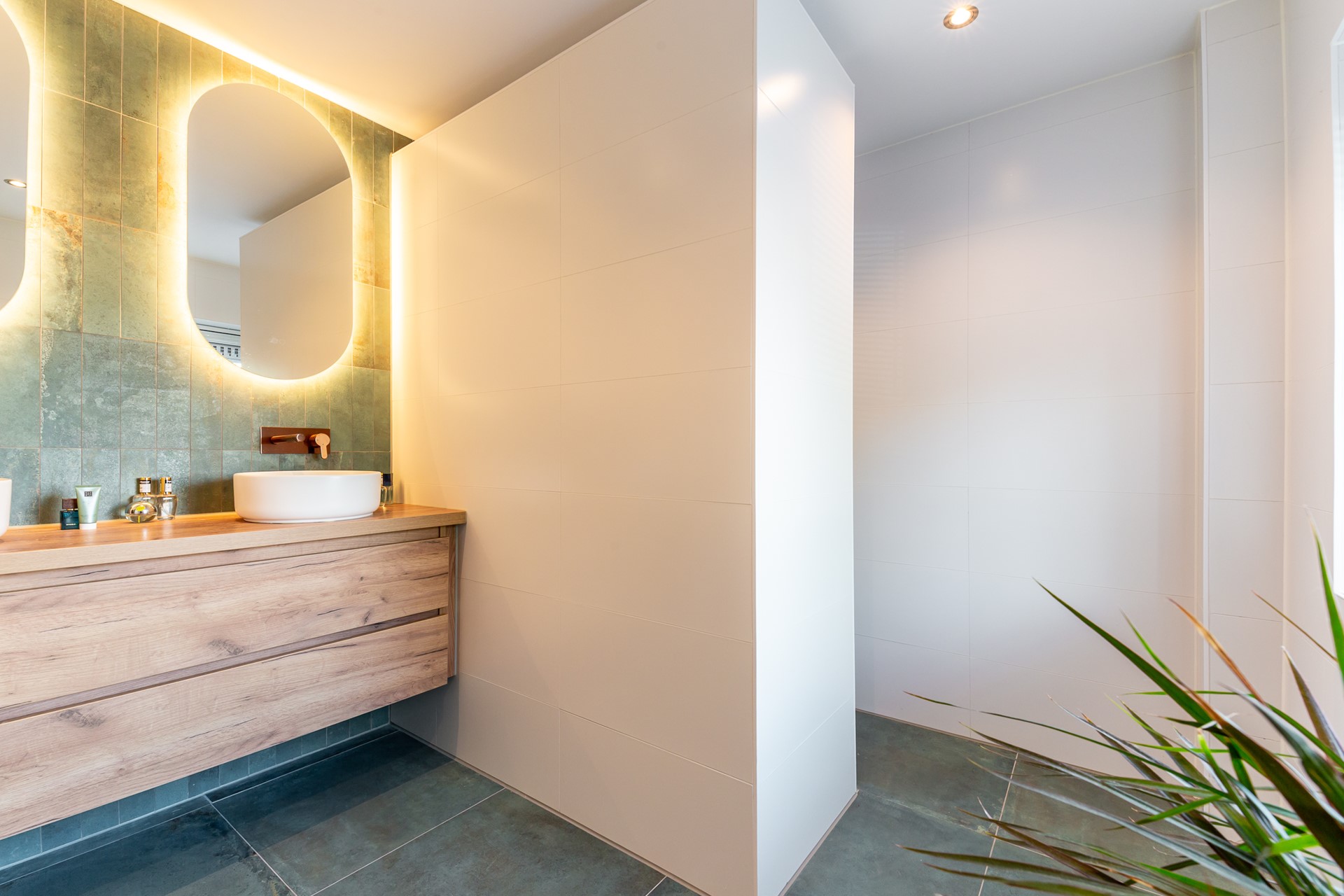 De badkamer is een echt pluspunt: in moderne stijl vernieuwd en voorzien van eigentijds sanitair. Denk aan een ruime inloopdouche, een stijlvol wastafelmeubel en een frisse afwerking een plek waar je de dag ontspannen begint of juist lekker afsluit.