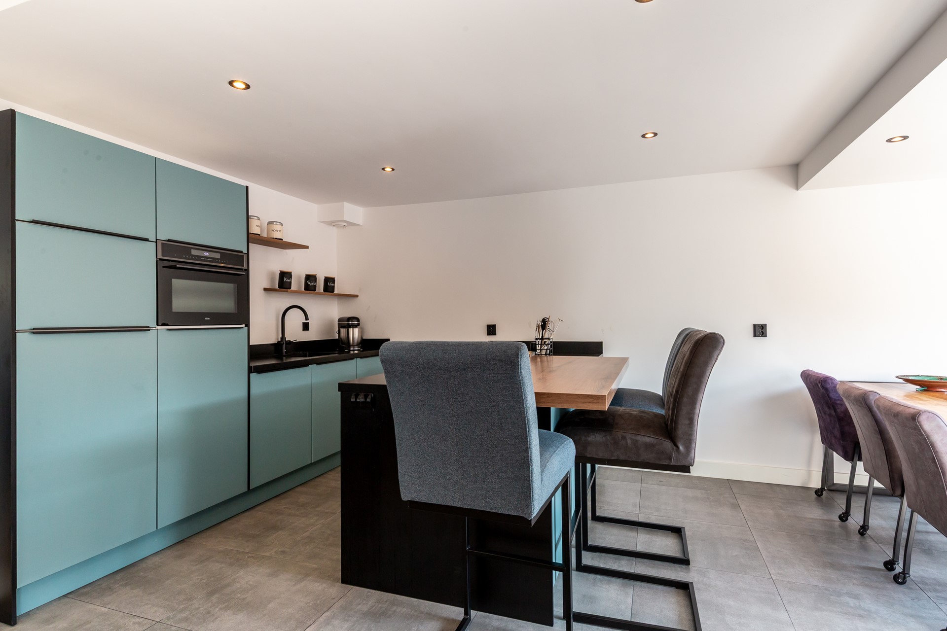 - Moderne keuken (2022) met bar, Quooker en geïntegreerde afzuiging