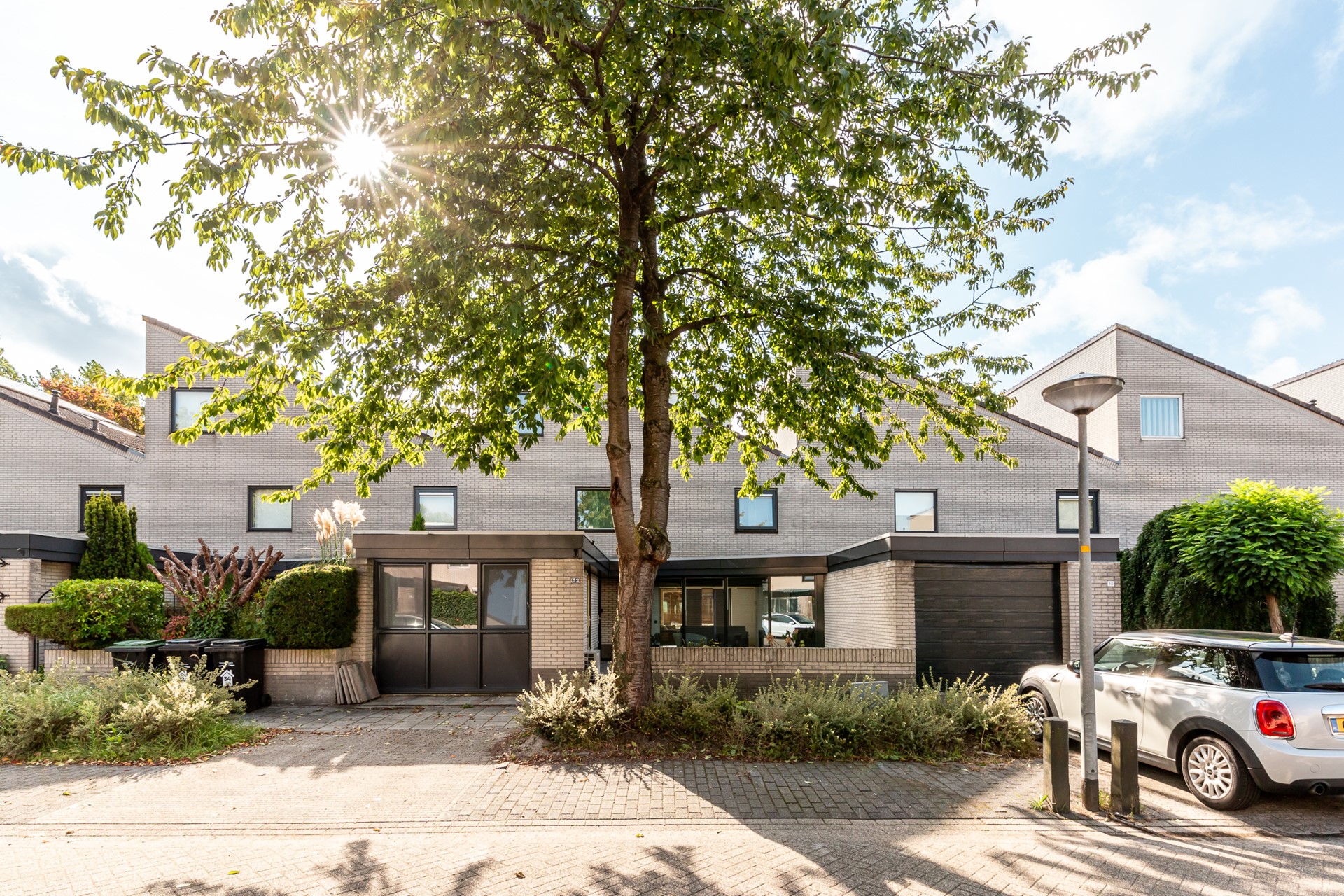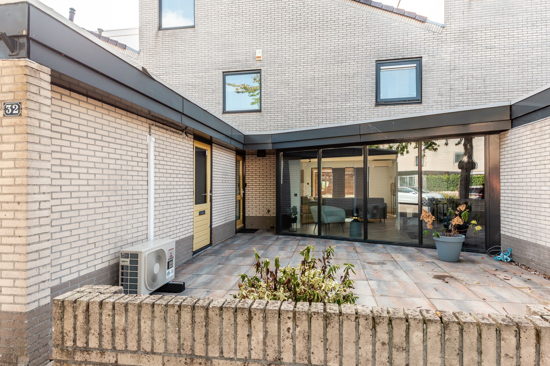 De voortuin is in 2024 volledig opnieuw bestraat en verwelkomt je met een strakke en nette uitstraling. Ook vind je hier de praktische berging, ideaal voor fietsen of extra opslag.