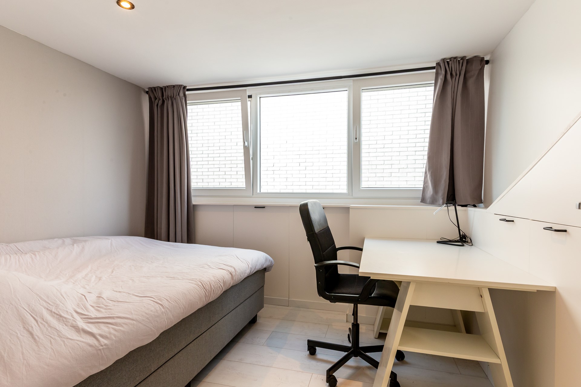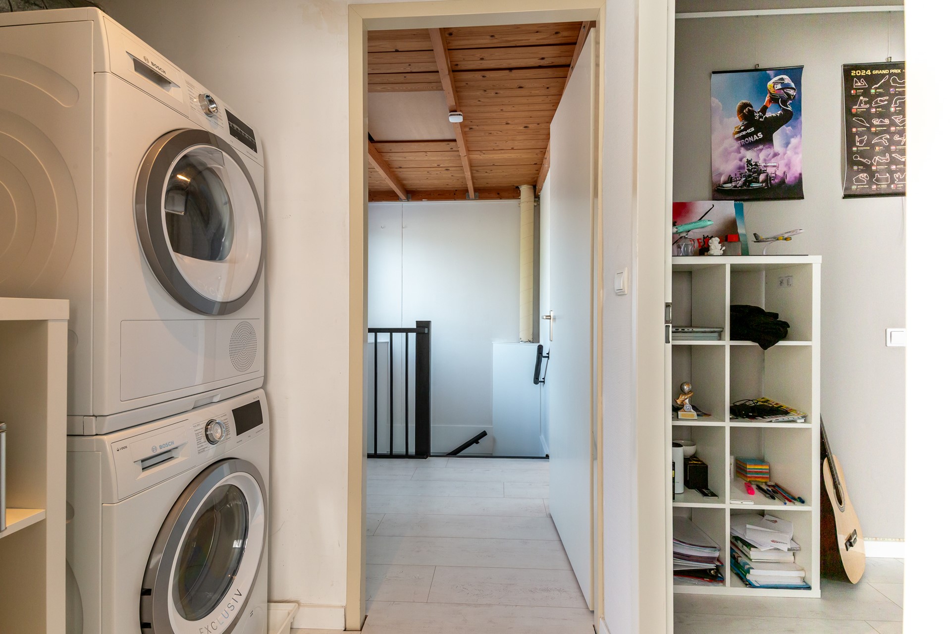 De trap naar boven is opnieuw bekleed en leidt naar de eerste verdieping, waar je drie goed bemeten slaapkamers vindt. Alle kamers zijn voorzien van een strakke laminaatvloer en keurig afgewerkt, waardoor je ze direct kunt inrichten als slaap-, kinder- of werkkamer.
