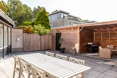 De achtertuin is in 2022 volledig opnieuw aangelegd en straalt gezelligheid uit. Strakke bestrating, een verzorgde indeling en een sfeervolle veranda maken dit een heerlijke plek om te ontspannen. Of je nu geniet van een kop koffie in de ochtendzon of lange zomeravonden doorbrengt met vrienden en familie hier kan het allemaal. Achterin de tuin staat bovendien een handige berging voor fietsen en tuinspullen.