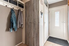 Je komt binnen in de hal met toegang tot het toilet, de trapopgang naar de eerste verdieping en de woonkamer.