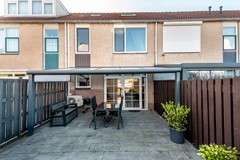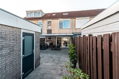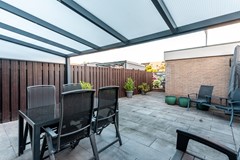 De achtertuin is onderhoudsvriendelijk aangelegd met een keurige tegel en een overkapping voorzien van verlichting. Achterin de tuin staat een stenen berging met kunststof deur. Via de achterom loop je zo het speelveldje achter de woning op, ideaal voor kinderen om buiten te spelen of voor een gezellige buurtbarbecue. De tuin is gelegen op het noordwesten, waardoor je hier in de middag en avond heerlijk kunt genieten van de zon.