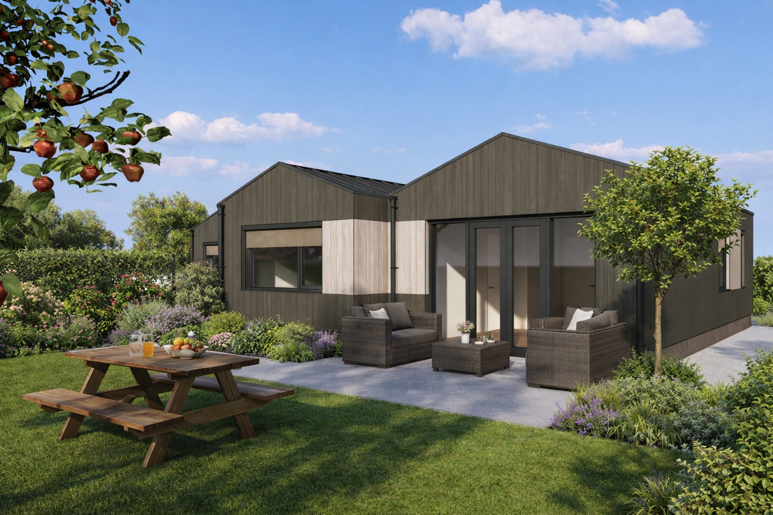 Deze woning wordt gebouwd volgens een hoogwaardig houtskeletbouwconcept met ecologische materialen en een dampopen constructie. Dit zorgt voor een gezond binnenklimaat, extreem lage energielasten en een toekomstbestendige woning.
