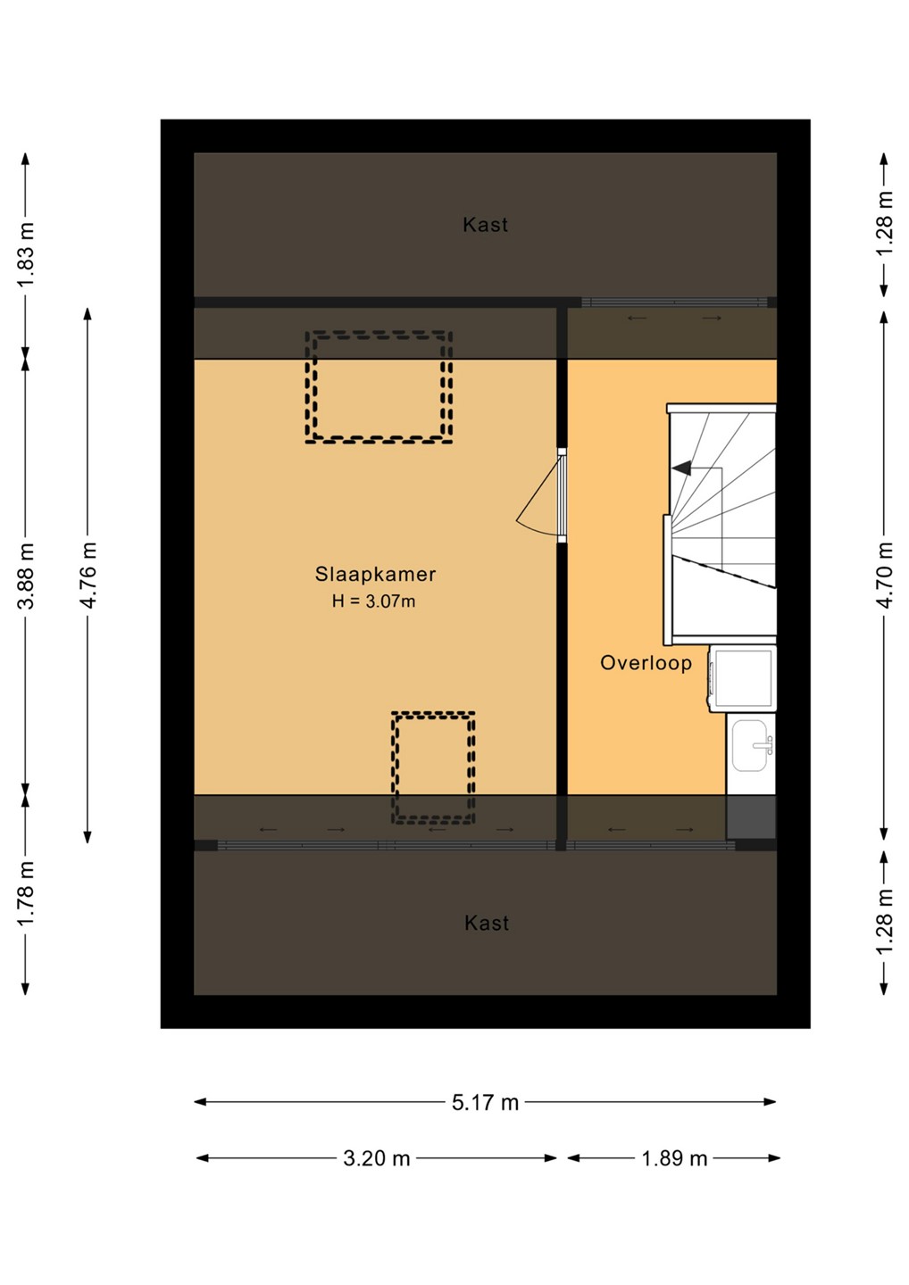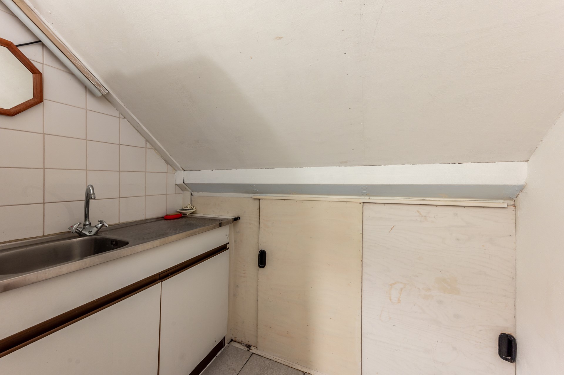 The second floor consists of a landing with a washing machine connection and a full-sized bedroom. This level also offers opportunities for further expansion. Several homes in the neighborhood have opted to install a dormer window, which is also possible here. This would easily create additional space and even more living comfort.