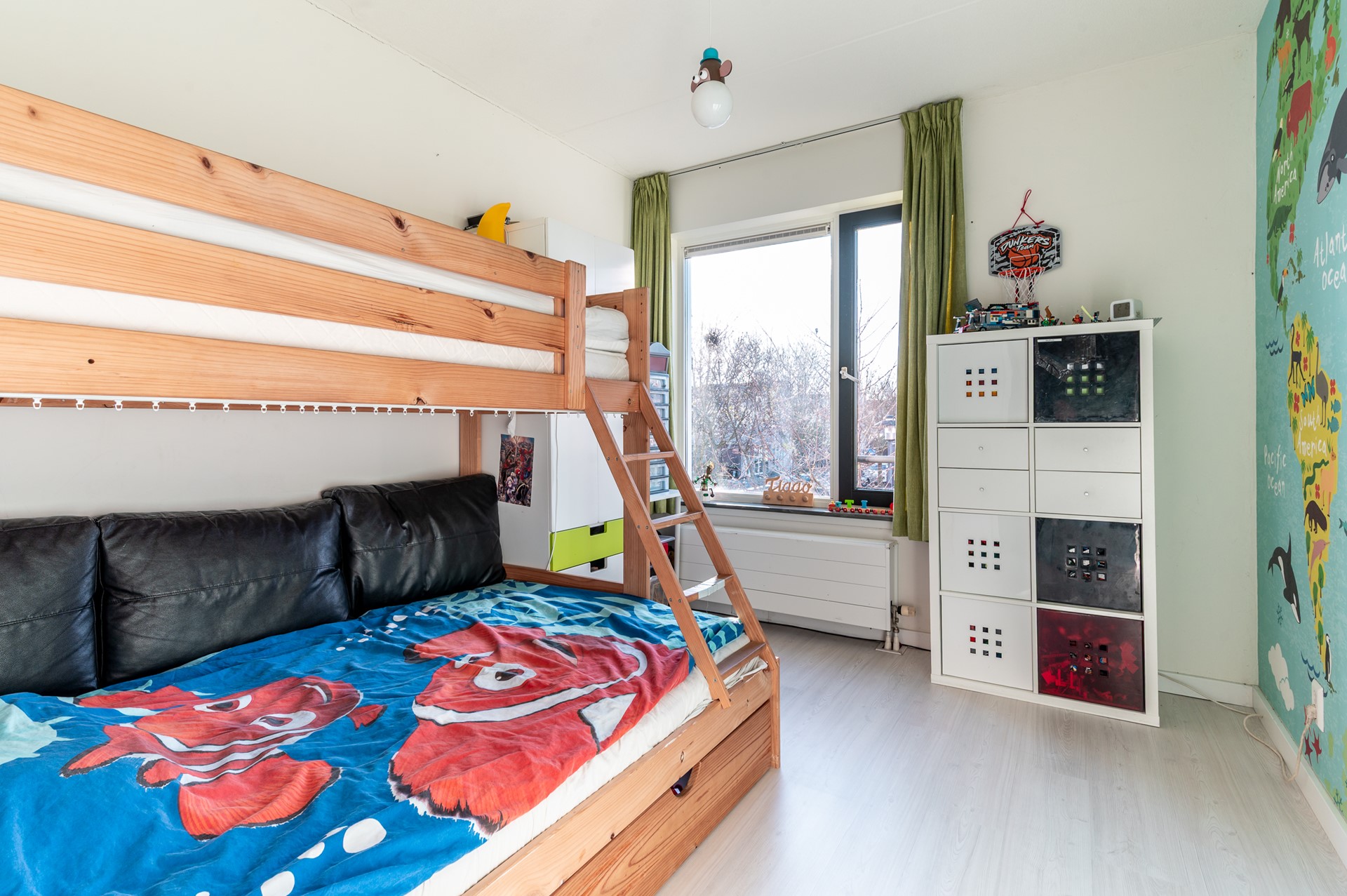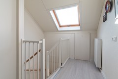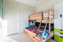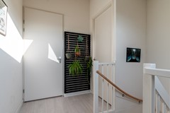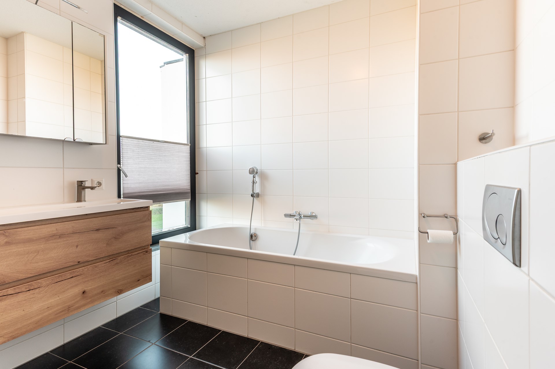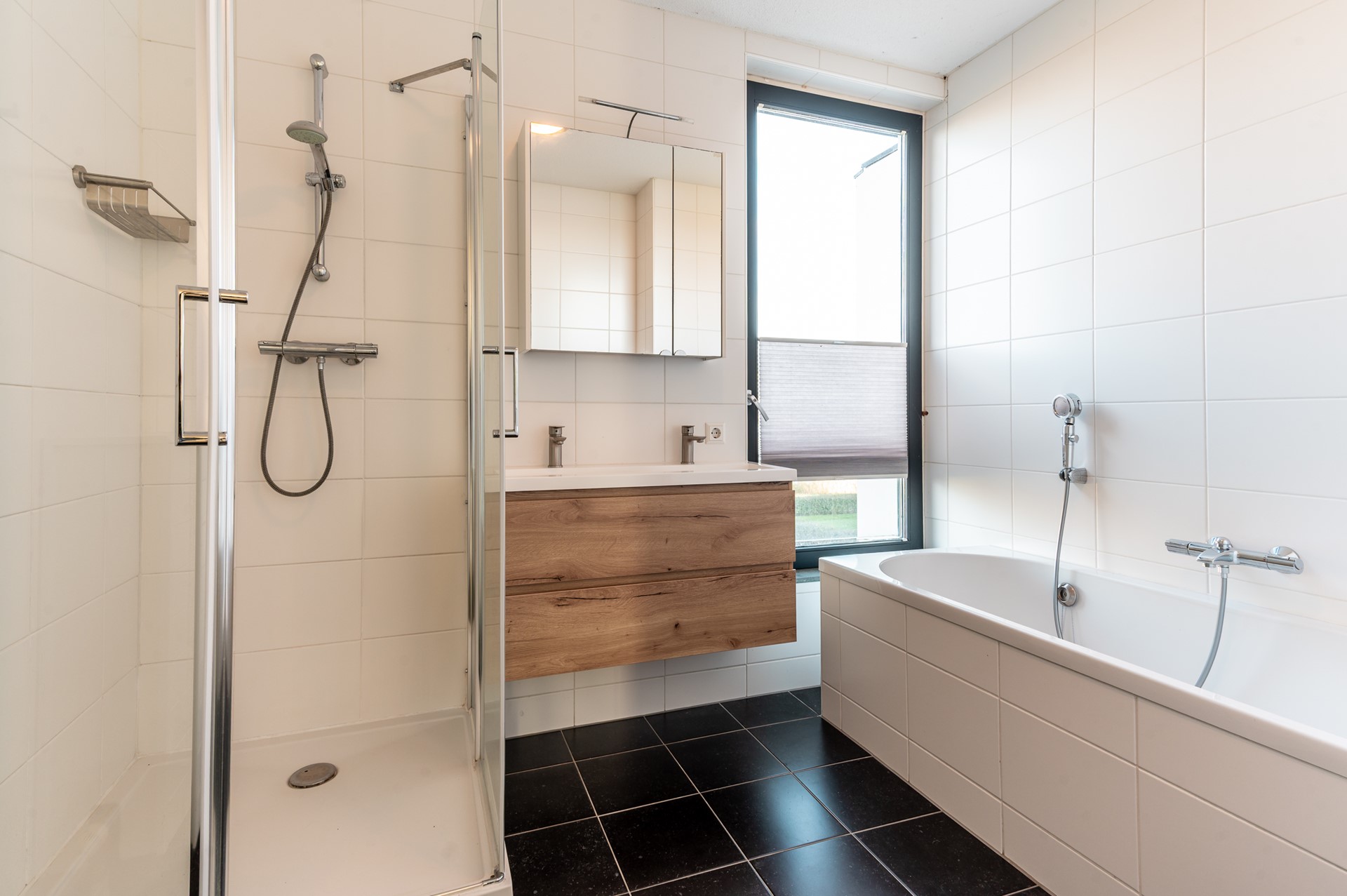 Op de eerste verdieping bevinden zich vier slaapkamers die stuk voor stuk prettig van formaat zijn. Iedere kamer heeft een fijne lichtinval en een rustige uitstraling, waardoor ze ideaal zijn als slaapkamer voor kinderen, werkruimte of logeerkamer. De ruimtes liggen logisch rondom de overloop en voelen door de nette afwerking direct comfortabel aan. De badkamer op deze verdieping is zorgvuldig onderhouden en biedt alle belangrijke voorzieningen. Er is een toilet aanwezig, een ruime douche, een ligbad en een fraai wastafelmeubel met dubbele kraan. Het is een prettige badkamer waarin iedereen genoeg ruimte heeft om de dag goed te beginnen of ontspannen af te sluiten.