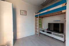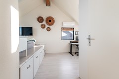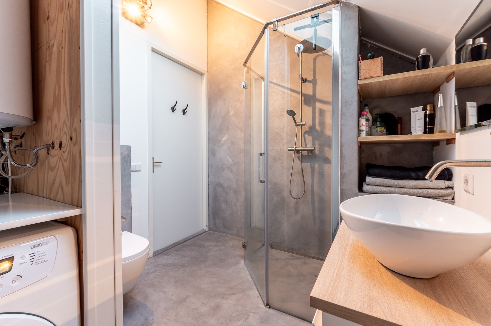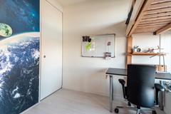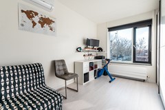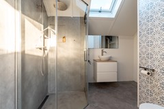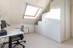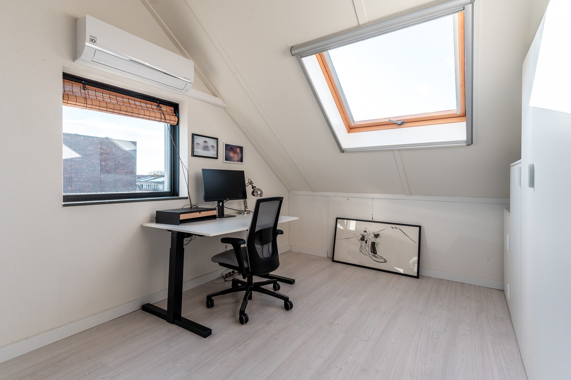 De tweede verdieping is een plek die onmiddellijk indruk maakt. Hier bevindt zich een royale slaapkamer die door de enorme raampartij een spectaculair uitzicht biedt over de Noorderplassen. Dit is zo’n kamer waar je ’s ochtends wakker wordt met het gevoel alsof je midden in het natuurgebied leeft, dankzij het wijdse panorama aan de voorzijde. De ruimte is groot genoeg om volledig naar eigen wens in te richten en voelt door het vele daglicht heerlijk ruim en luxe aan. Op deze verdieping is ook een tweede badkamer gecreëerd, die in 2021 is gerealiseerd. Deze badkamer beschikt over een douche, een toilet en de aansluitingen voor de wasmachine en droger, waardoor deze verdieping een bijzonder praktische en comfortabele leeflaag vormt. Het geheel geeft de woning een extra stukje luxe en maakt het huis ideaal voor grotere huishoudens, of juist voor wie graag een eigen verdieping als master suite wil benutten.