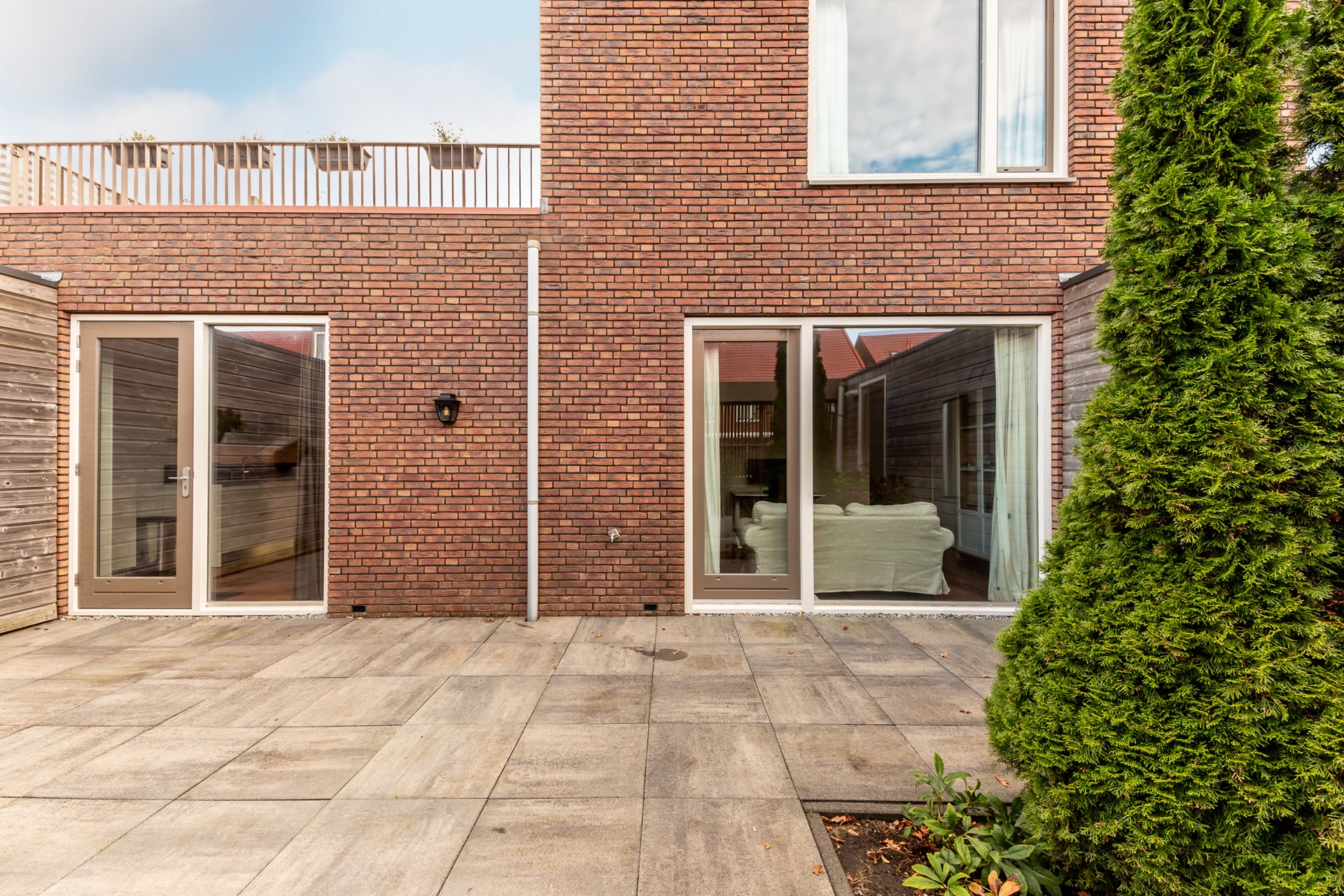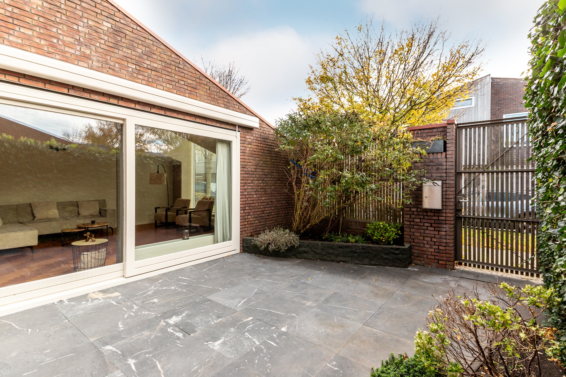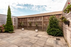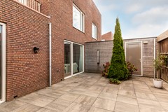 Aan de voorzijde bevindt zich een zonnige patio op het zuiden, waar je in alle rust kunt genieten van privacy en zon. De achtertuin heeft een brede schuifdeur vanuit de slaapkamer op de begane grond en loopdeur vanuit de keuken. De achtertuin biedt ruimte om een auto op eigen terrein te parkeren of heerlijk te gebruiken als "achtertuin". Daarnaast is er een extra berging aanwezig voor opslag of fietsen.