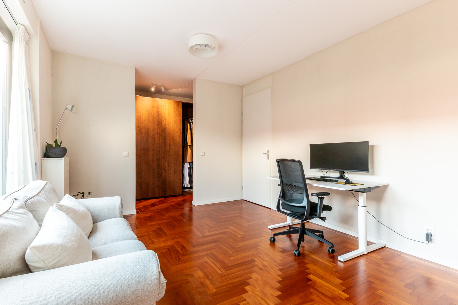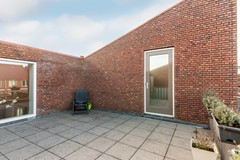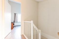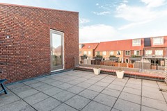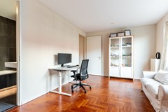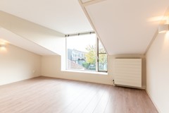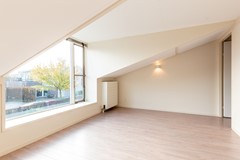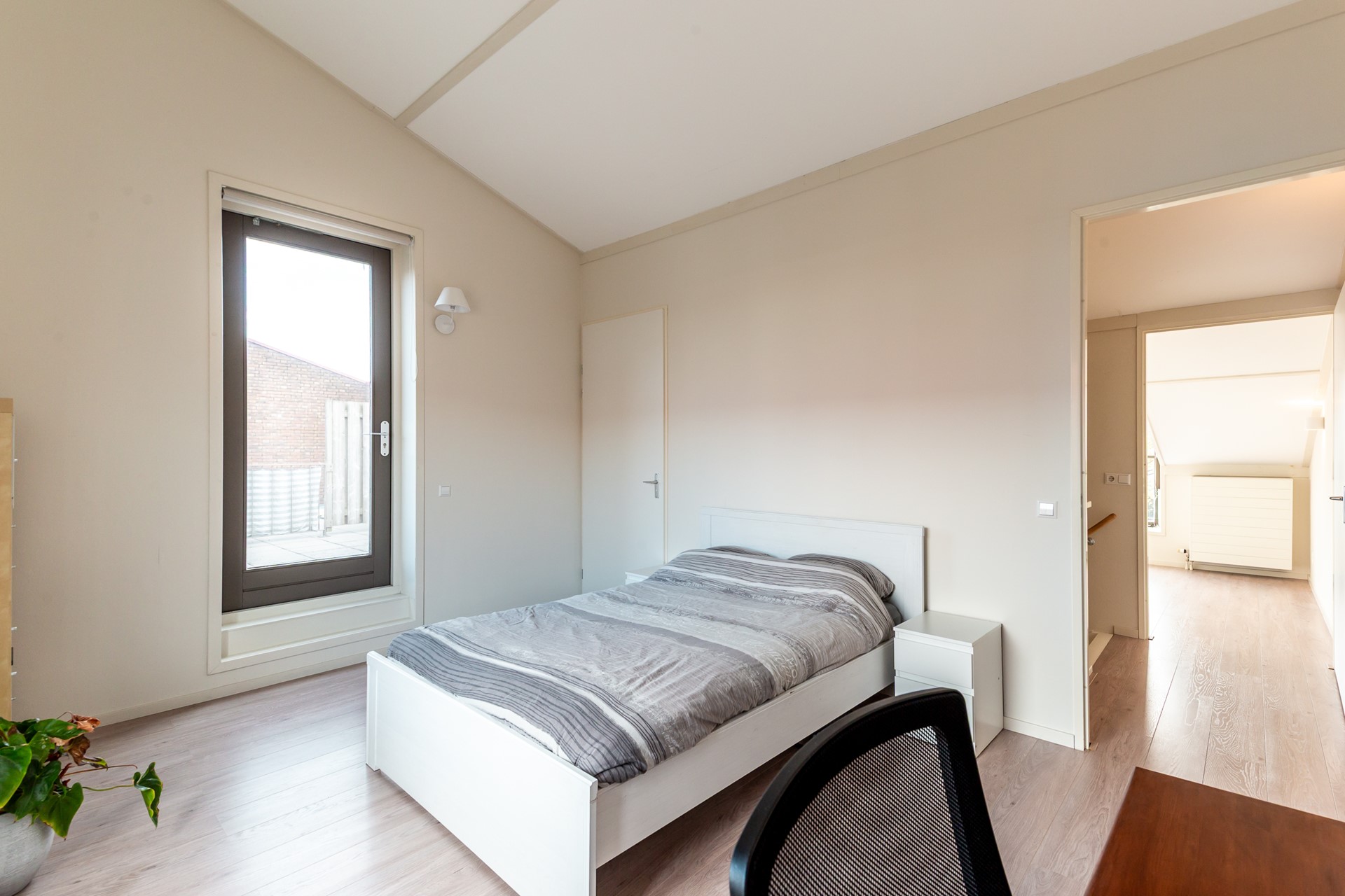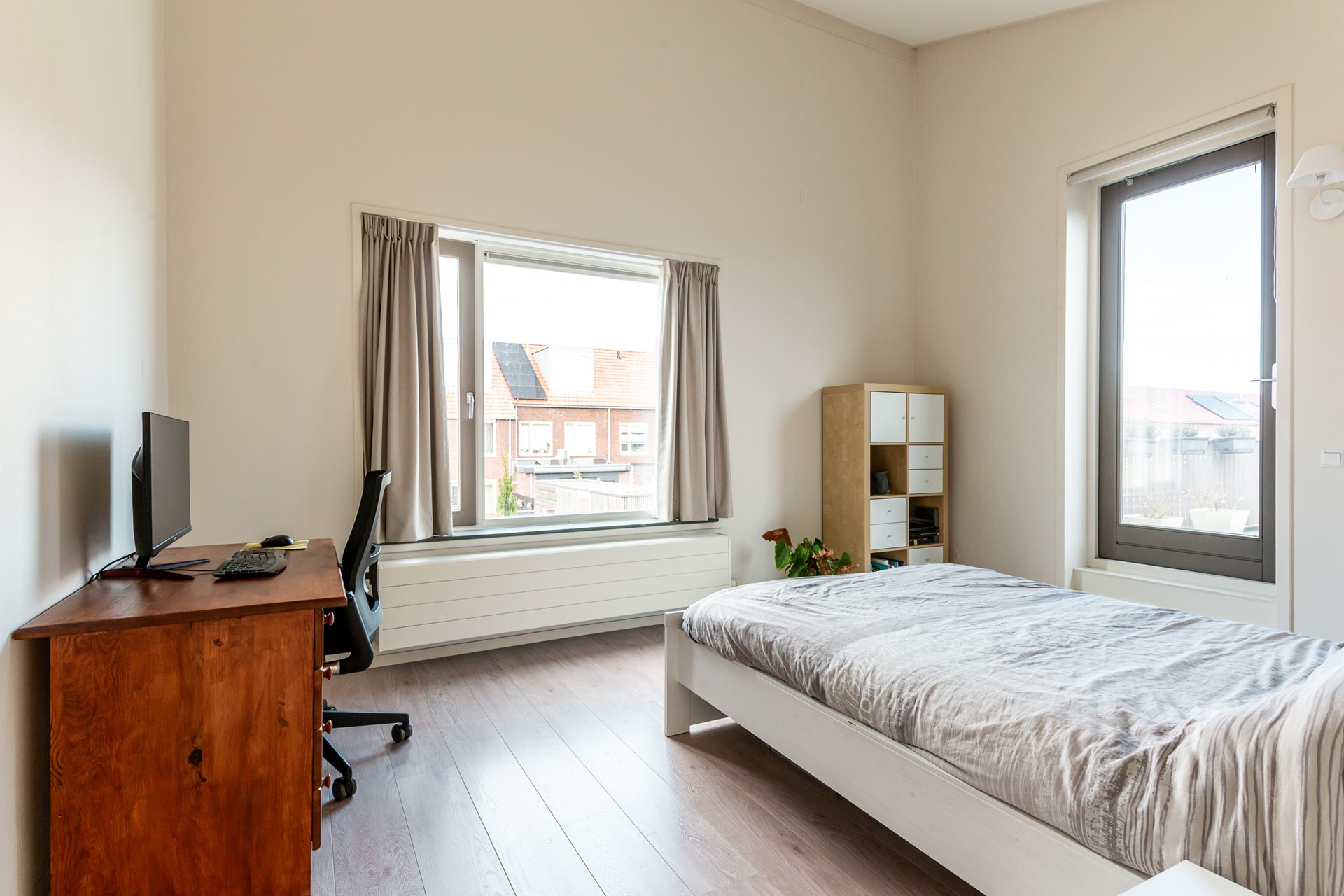 De overloop geeft toegang tot twee ruime slaapkamers met veel lichtinval. De slaapkamer aan de achterzijde biedt toegang tot een ruim dakterras. In de slaapkamer bevind zich een ruime berging, waar voorbereidingen zijn getroffen voor een eventuele tweede badkamer. Alle aan- en afvoeren zijn al voorbereid. Hier is dus een an-suit badkamer te creëren. Ideaal!