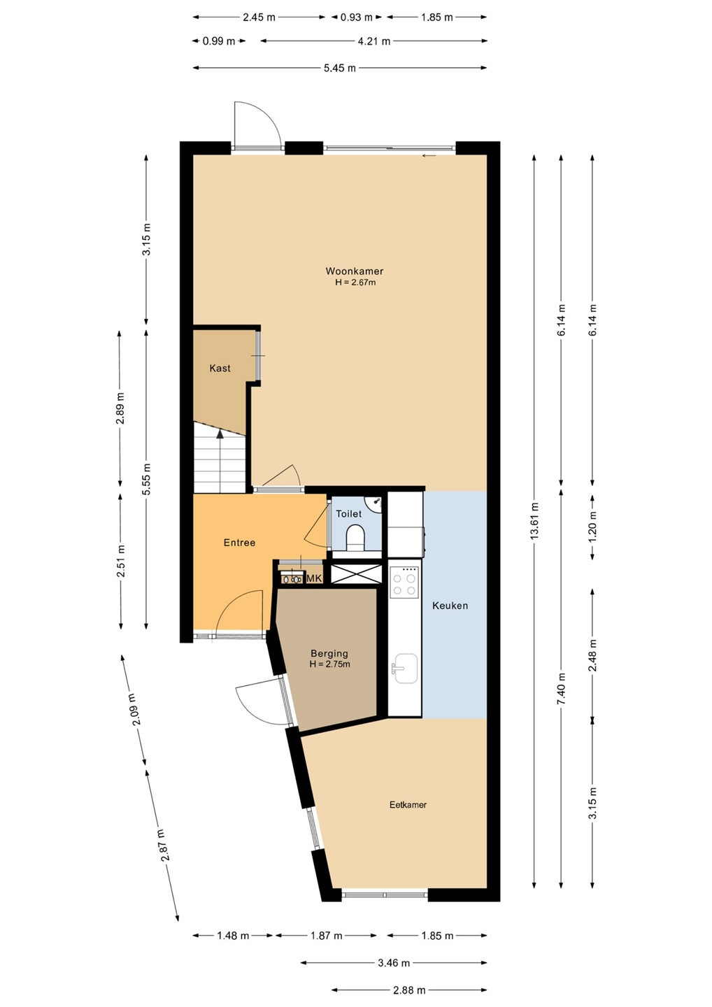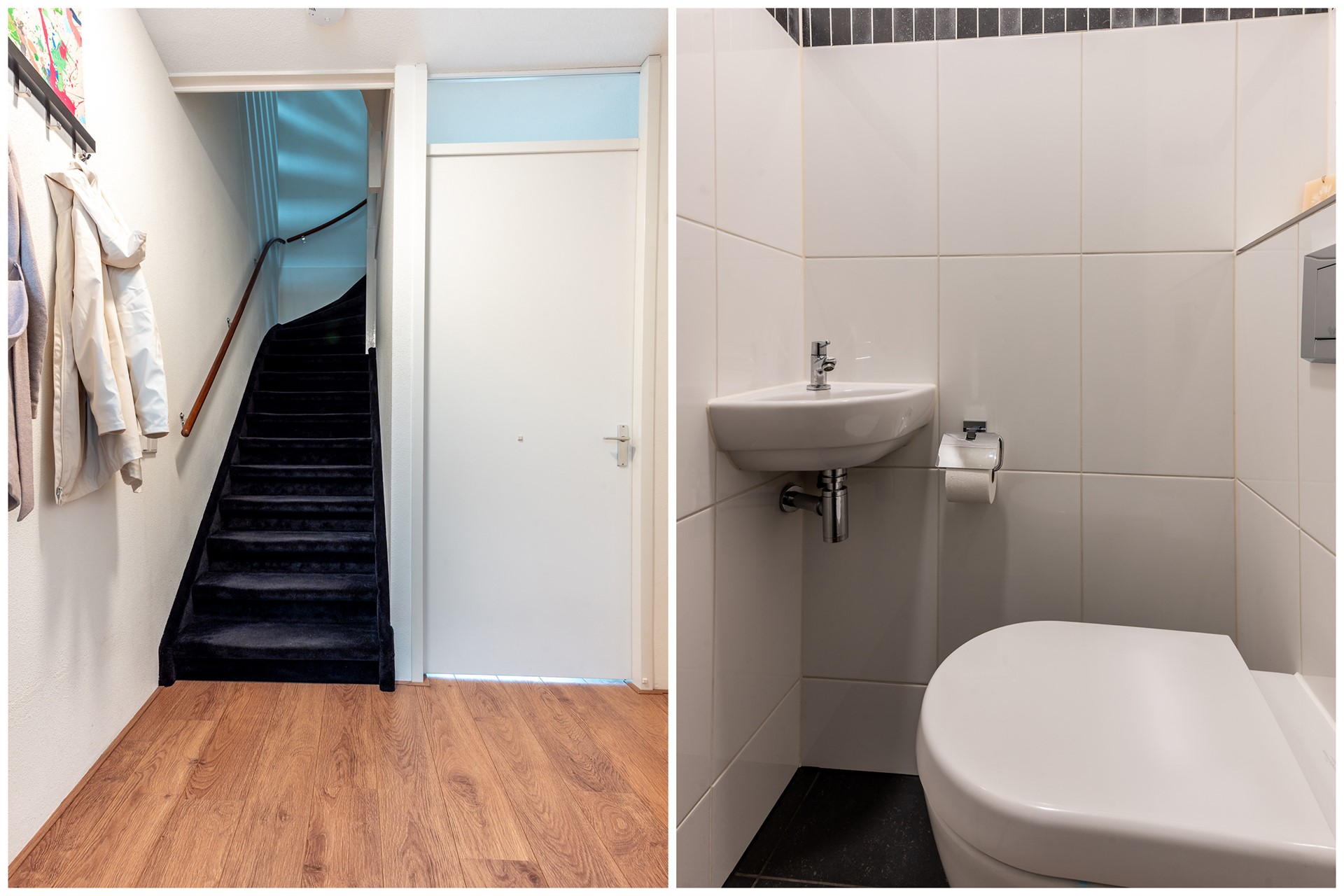 Via de entree bereikt u de hal met toilet, meterkast en trapopgang naar de eerste verdieping.