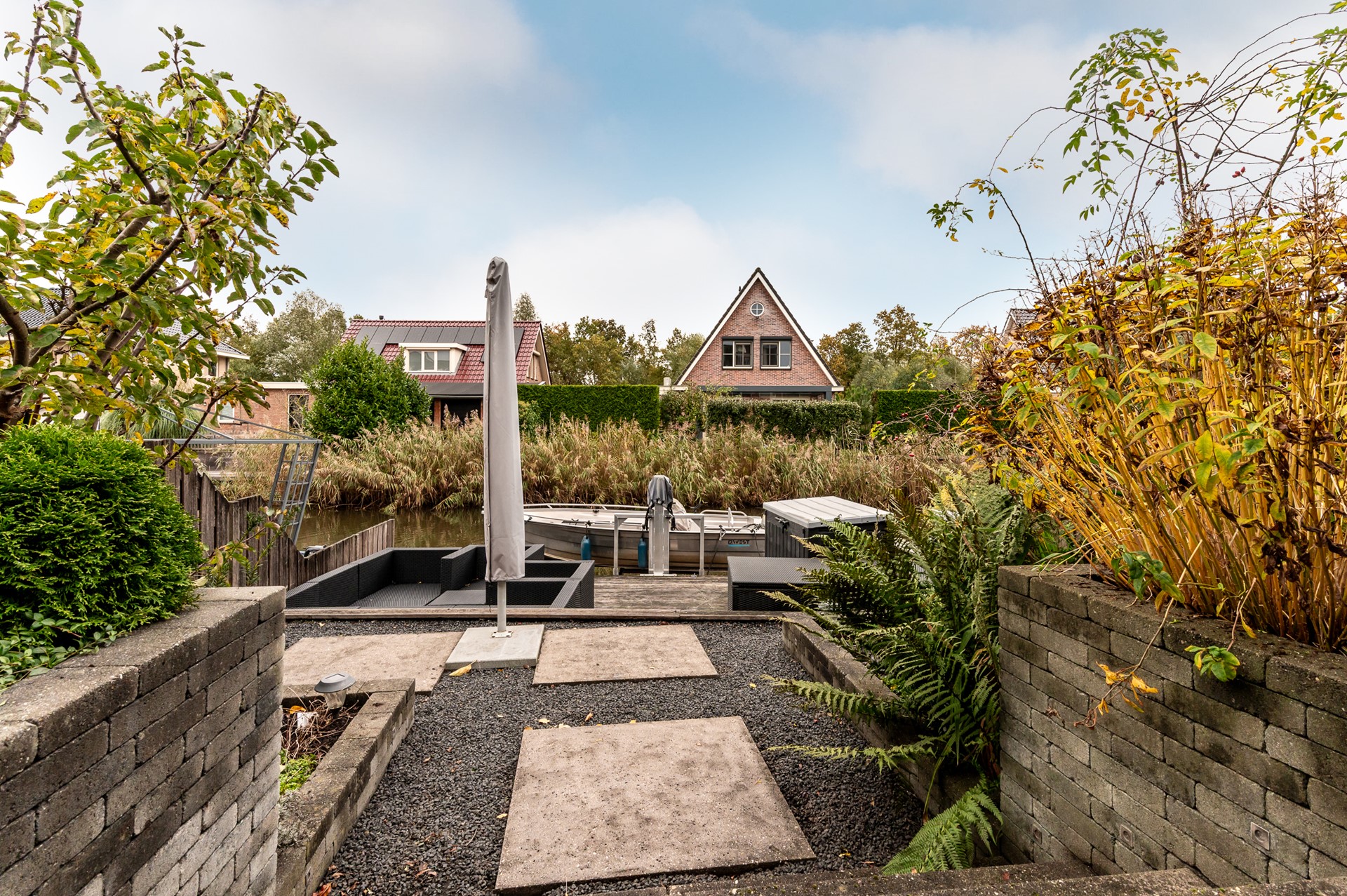 - Splitlevel tuin met eigen steiger aan het water
