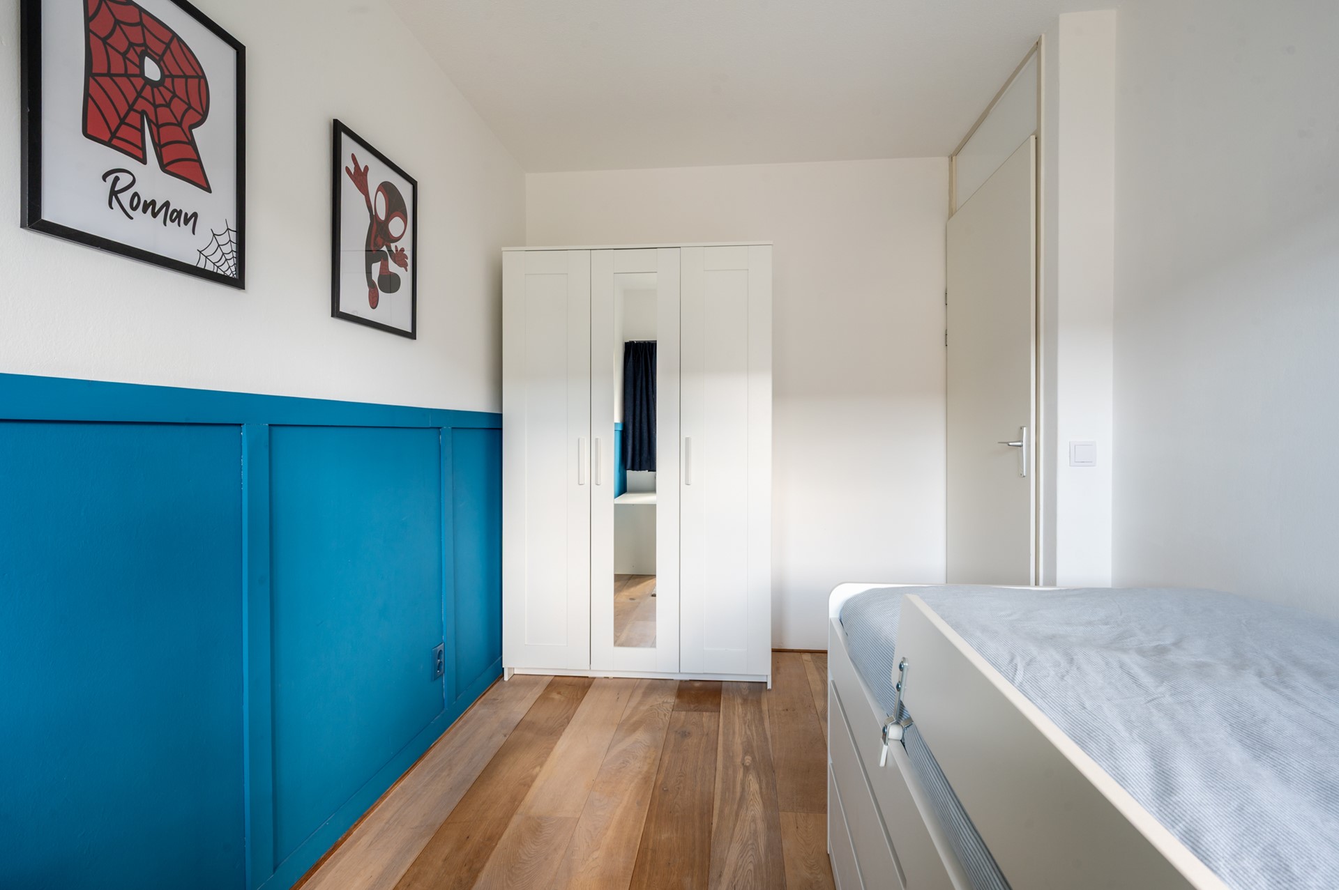De eerste verdieping biedt twee royale slaapkamers, beide voorzien van een fraaie houten vloer. De hoofdslaapkamer is aan de achterzijde uitgebouwd met een kunststof dakkapel en voorzien van een op maat gemaakte inbouwkast. Hier past met gemak een groot tweepersoonsbed én extra meubilair. De tweede slaapkamer aan de voorzijde is eveneens ruim en ideaal als kinderkamer, logeerkamer of thuiswerkplek.