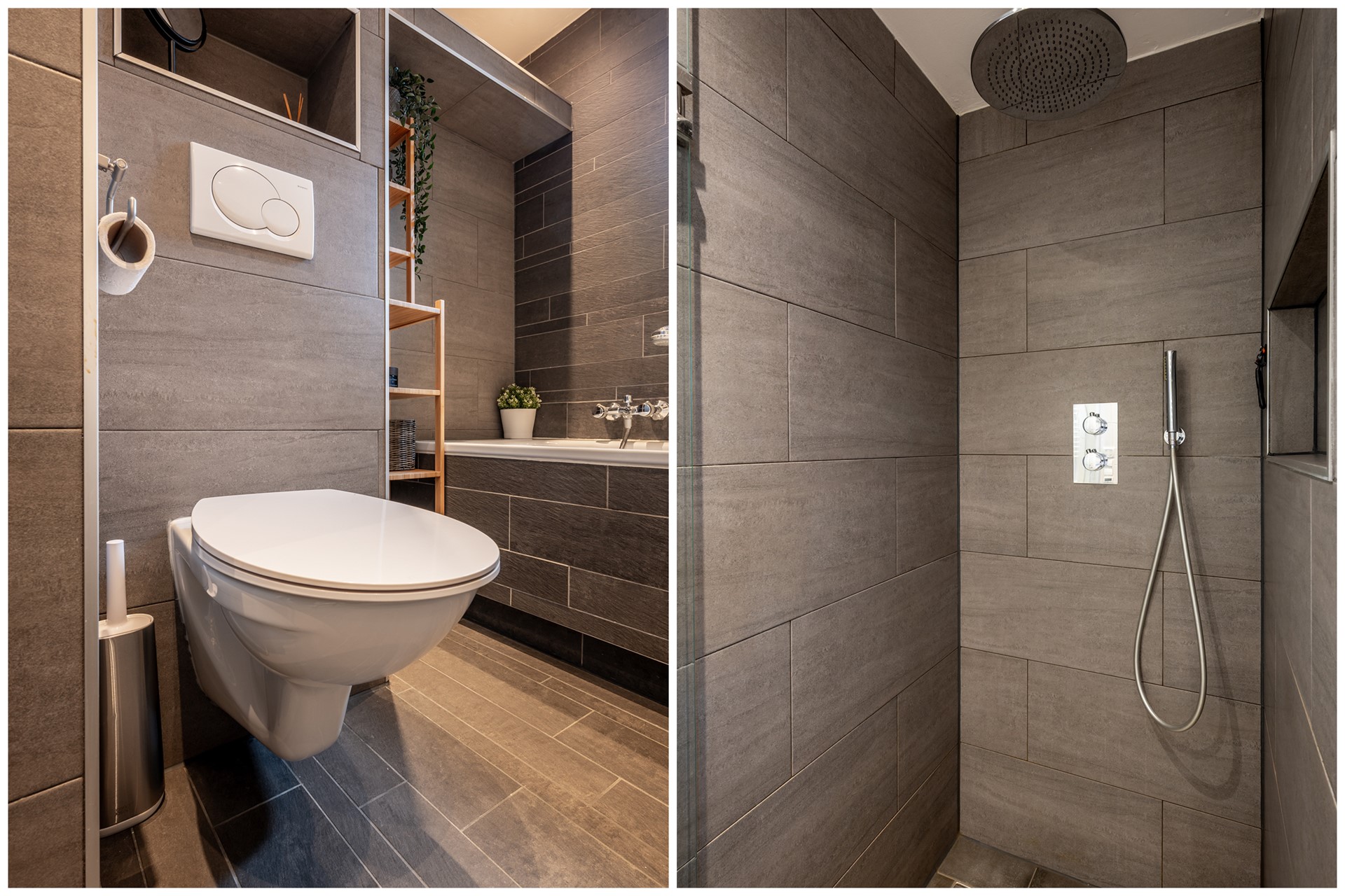 De badkamer is compleet vernieuwd en uitgerust met een ruime inloopdouche met regendouchekop, een ligbad, tweede toilet, modern wastafelmeubel, handdoekradiator én vloerverwarming. Luxe en comfort komen hier samen.