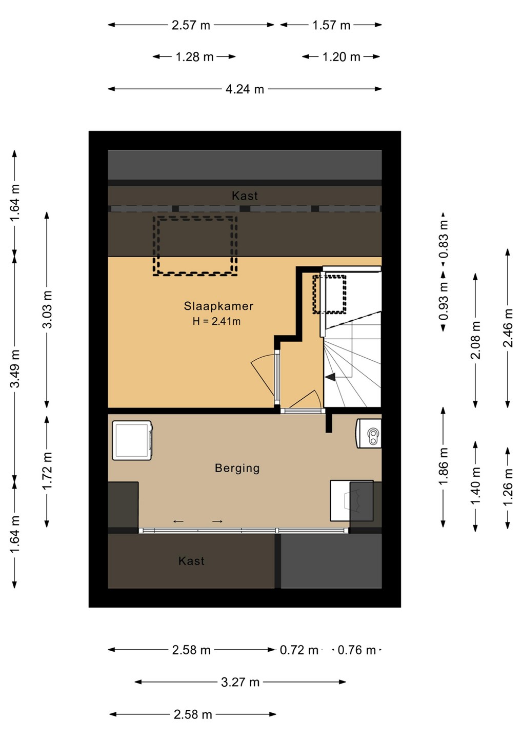 Op de tweede verdieping is aan de voorzijde een kunststof dakkapel geplaatst, waardoor er volop licht en ruimte is ontstaan. Hier vind je de opstelplaats voor de CV-ketel, mechanische ventilatie en wasmachine/droger, maar ook veel extra bergruimte achter de knieschotten. Aan de achterzijde is nog een derde slaapkamer, met ingebouwde lades en een groot raam. Ook hier ligt een prachtige houten vloer.
