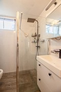 De badkamer verdient een aparte vermelding. Deze is goed verzorgd afgewerkt. Hier vindt u alle comfort die u mag verwachten: een fijne plek om de dag ontspannen te beginnen of juist rustig af te sluiten. De combinatie van ruimte, licht en functionaliteit maakt dit een volwaardige en comfortabele badkamer waar u jarenlang plezier van heeft. De wasmachine aansluiting bevind zich tevens in de badkamer, wat keurig achter een deur is weggewerkt.