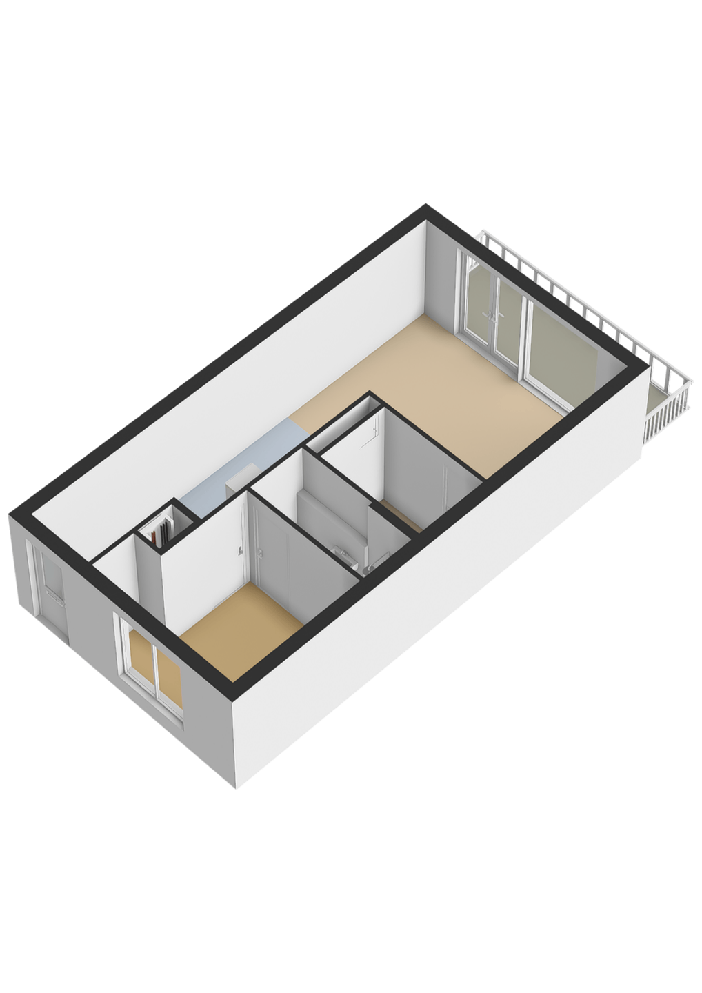 Bij binnenkomst betreedt u de hal, die toegang geeft tot vrijwel alle vertrekken in de woning. Vanuit hier bereikt u de lichte woonkamer, de slaapkamer en de moderne badkamer.