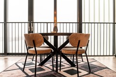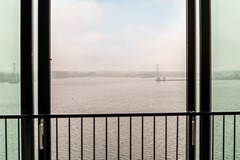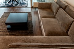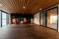 De woonkamer is het absolute hoogtepunt van deze woning. Hier geniet u dagelijks van een panoramisch uitzicht over de skyline van Almere en het unieke, groene landschap erachter. De enorme ramen brengen buiten naar binnen en overgieten de ruimte met natuurlijk licht. Of u nu ontspannen wilt loungen, uitgebreid wilt dineren of uw eigen sfeervolle hoekjes wilt creëren: de mogelijkheden zijn eindeloos.