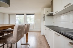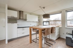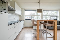 De open keuken sluit mooi aan op de woonkamer en is praktisch ingericht. Deze is voorzien van diverse inbouwapparatuur, waaronder een kookplaat, een vaatwasser (2026), een combi-oven met magnetron functie, een ingebouwde koelkast en een recirculatie afzuigkap. Daarnaast is er veel kastruimte aanwezig, waardoor de keuken niet alleen ruim oogt, maar ook bijzonder functioneel is.