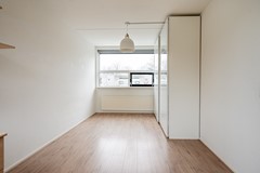 De slaapkamer is royaal van formaat en biedt voldoende ruimte voor een groot bed en kastenwand. Wat deze kamer extra bijzonder maakt, is de directe toegang tot een tweede dakterras. Dit geeft een gevoel van vrijheid en comfort; ’s ochtends stap je zo vanuit je bed naar buiten om even te genieten van de frisse lucht en de rust van de wijk.