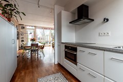 Via de entree betreed je de woning en loop je door naar de leefruimte, waar direct de ruimtelijkheid en het licht opvallen. De open keuken vormt het hart van de begane grond en sluit naadloos aan op de woonkamer. Deze indeling zorgt voor een fijne verbinding tussen koken, eten en ontspannen, ideaal voor gezinnen en voor wie graag gasten ontvangt.