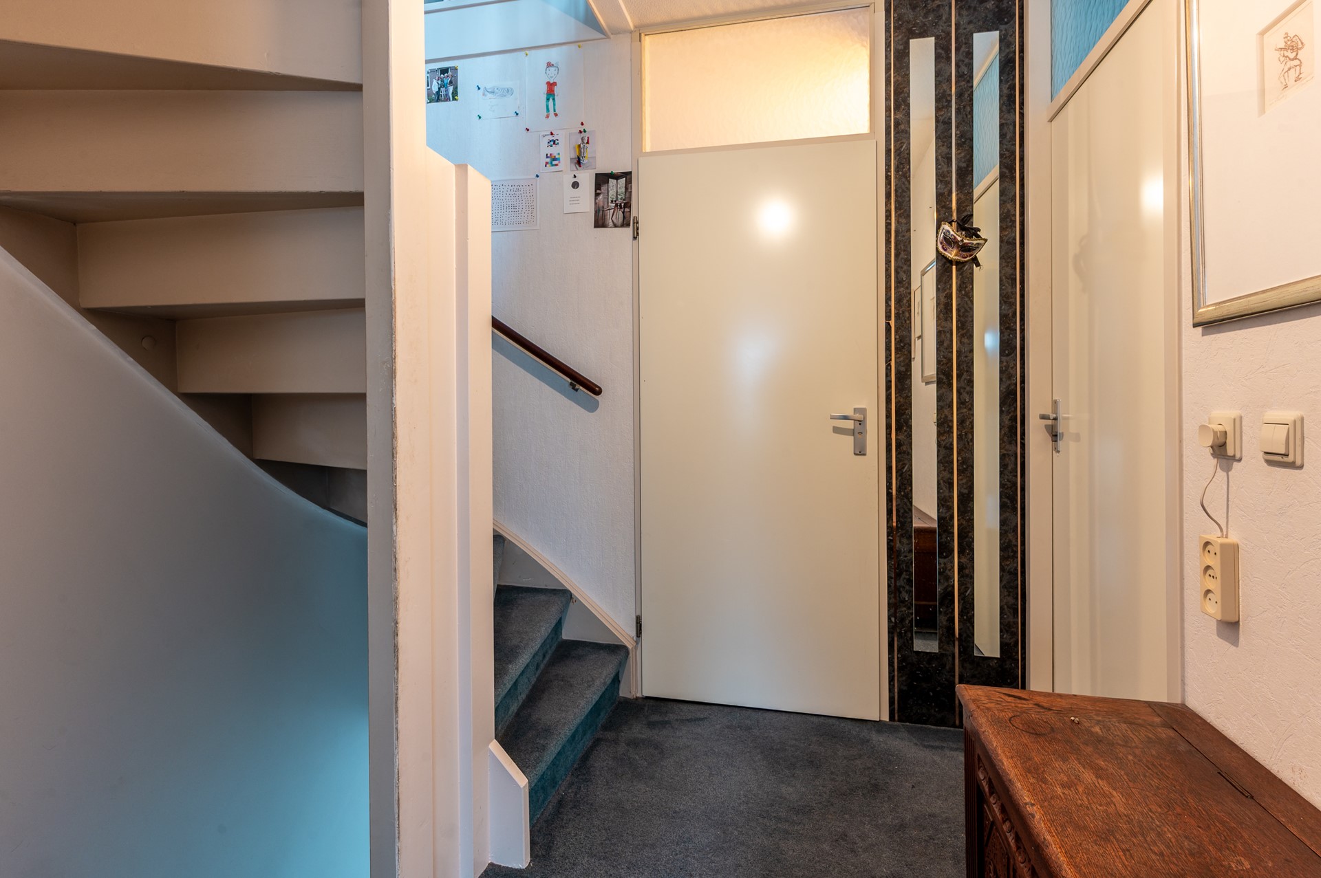 Bij aankomst valt direct de hoekligging op, wat zorgt voor extra ruimte en privacy. Parkeren doe je comfortabel op eigen terrein, een groot pluspunt in het dagelijks gebruik.