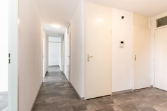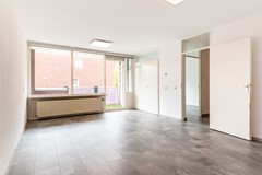 Bij binnenkomst in de woning tref je een nette en verzorgde hal met toegang tot het separate toilet, altijd handig voor jou en je gasten. De hal leidt je verder naar de ruime woonkamer, waar het licht prachtig binnenvalt via de grote ramen en je directe toegang hebt tot het zonnige balkon op het zuidwesten. Een heerlijke plek om na je werk nog even in de zon te zitten met een drankje.