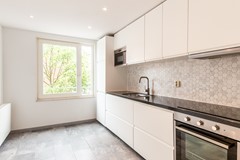 De tweede slaapkamer is praktisch ingedeeld en perfect als hoofdslaapkamer, thuiskantoor of logeerkamer. De keuken is keurig vernieuwd en van alle gemakken voorzien, strak, modern en klaar voor gebruik. Ook de badkamer is keurig afgewerkt en voorzien van een inloopdouche en wastafelmeubel.