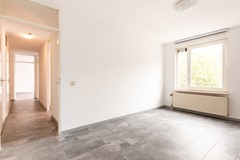 Grenzend aan de woonkamer bevindt zich de eerste slaapkamer, die ook via de hal bereikbaar is. Liever een extra ruime living? Deze kamer is eenvoudig bij de woonkamer te betrekken voor nóg meer leefruimte.