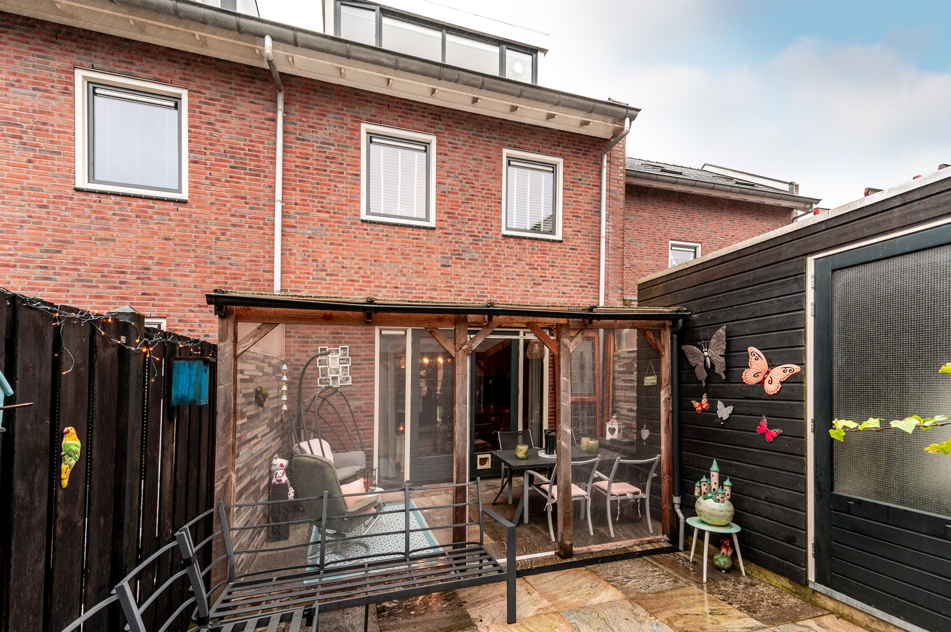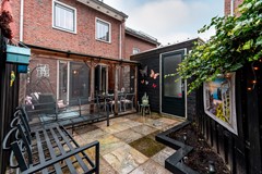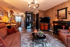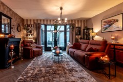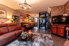 De ruime living aan de achterzijde biedt volop plek voor een royale zithoek en eettafel. De grote raampartijen en de dubbele openslaande deuren zorgen voor veel licht en een fijne verbinding met de tuin. Aangrenzend aan de woning bevindt zich een overkapping, waardoor je ook op minder zonnige dagen comfortabel buiten kunt zitten.