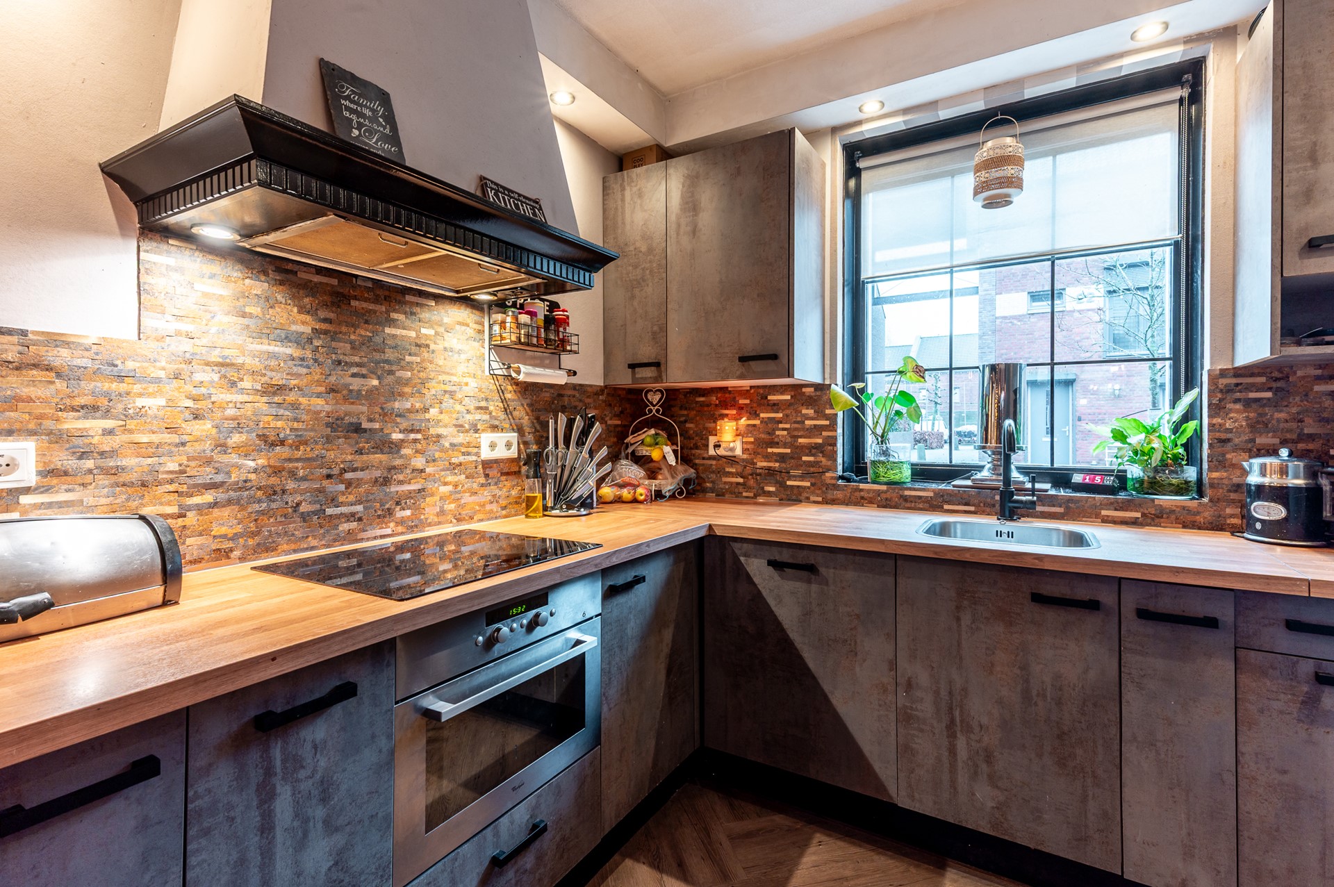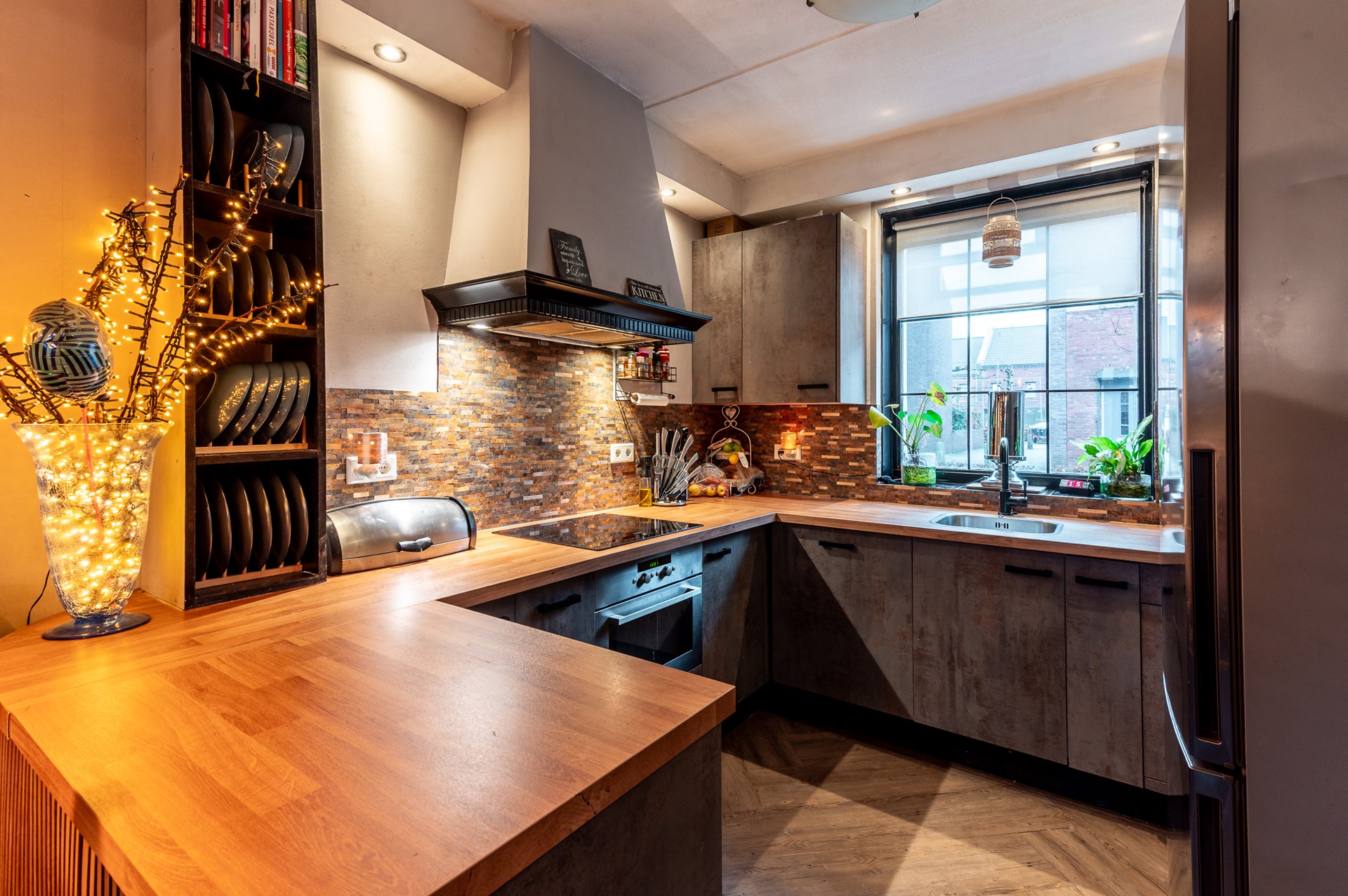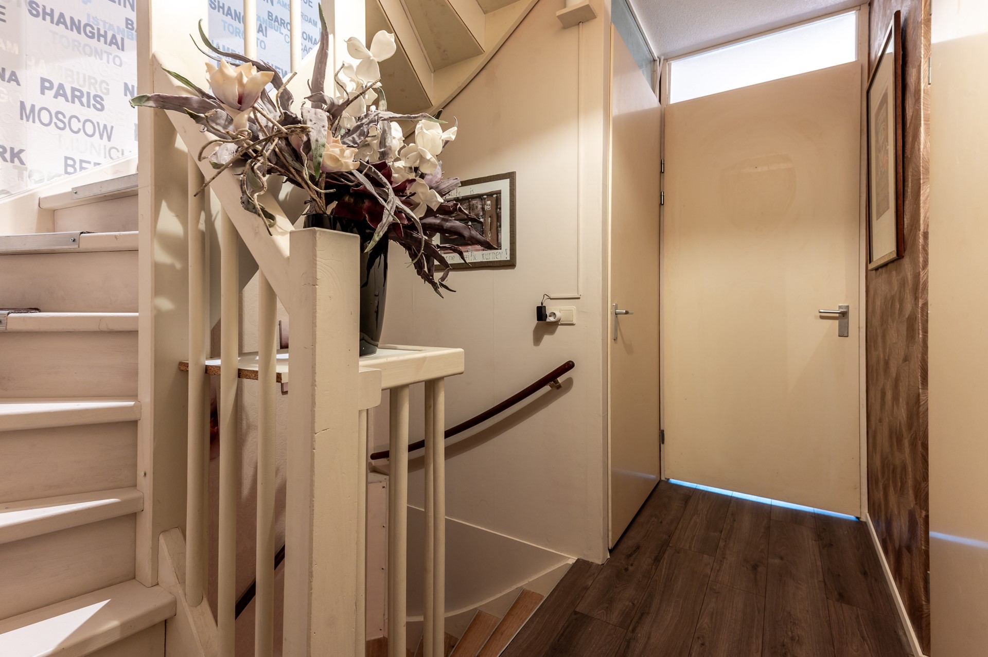 Via de entree kom je in de hal met toilet, meterkast en trapopgang. Aan de voorzijde van de woning bevindt zich de U-vormige keuken, praktisch ingedeeld en met prettig uitzicht over het plantsoen. Dankzij de slimme opstelling heb je hier veel werk- en kastruimte.