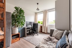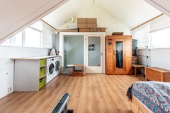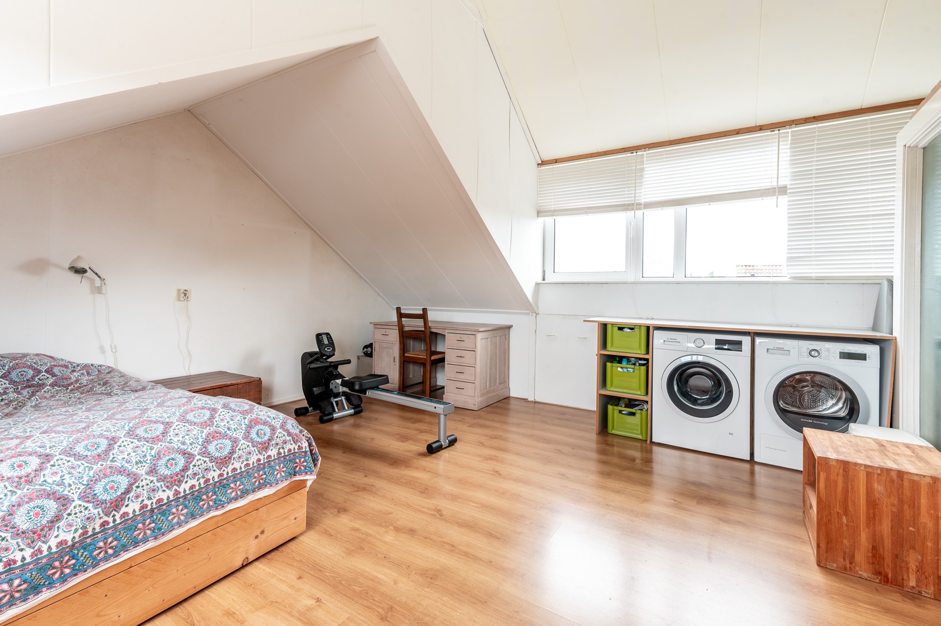 De zolder is voorzien van een extra opbouw, waardoor hier een verrassend ruime extra verdieping is ontstaan. Ideaal als riante ouderslaapkamer, werkkamer of zelfs een combinatie van beide. Er is bovendien volop bergruimte en ruimte voor de wasmachine- en drogeraansluiting. Ook op deze verdieping zijn de kozijnen uitgevoerd in kunststof, wat zorgt voor een moderne uitstraling en weinig onderhoud. Dankzij de opbouw geniet je hier van extra licht en een prettig wooncomfort.