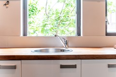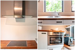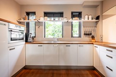 De open keuken aan de voorzijde is uitgevoerd in een moderne stijl en biedt volop kastruimte, werkblad en diverse inbouwapparatuur. Een ideale plek om uitgebreid te koken terwijl je in contact blijft met het gezin of je gasten.