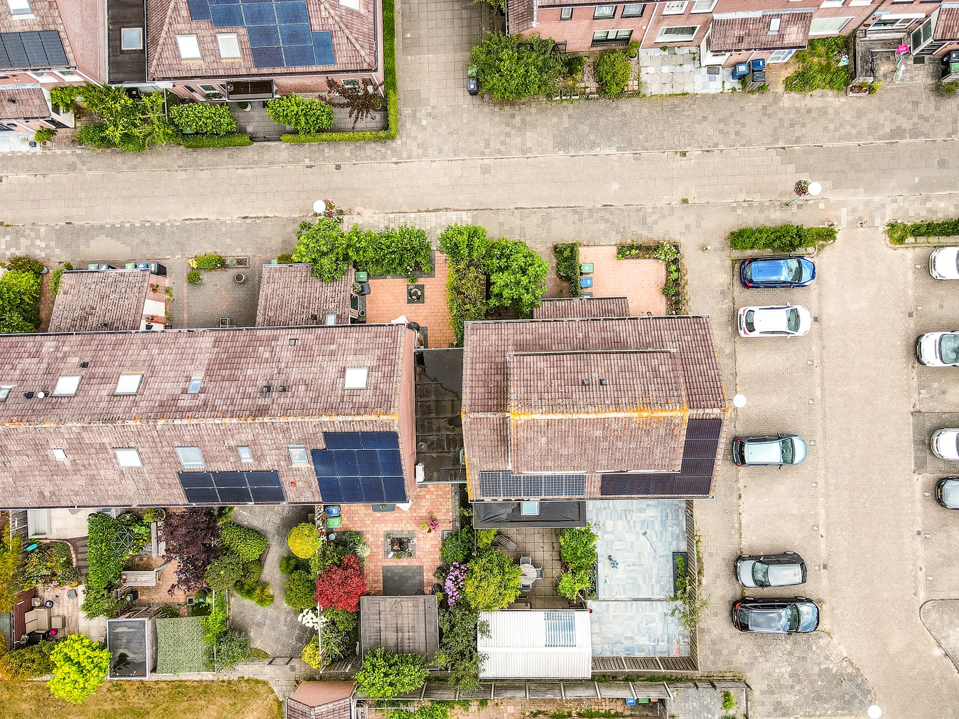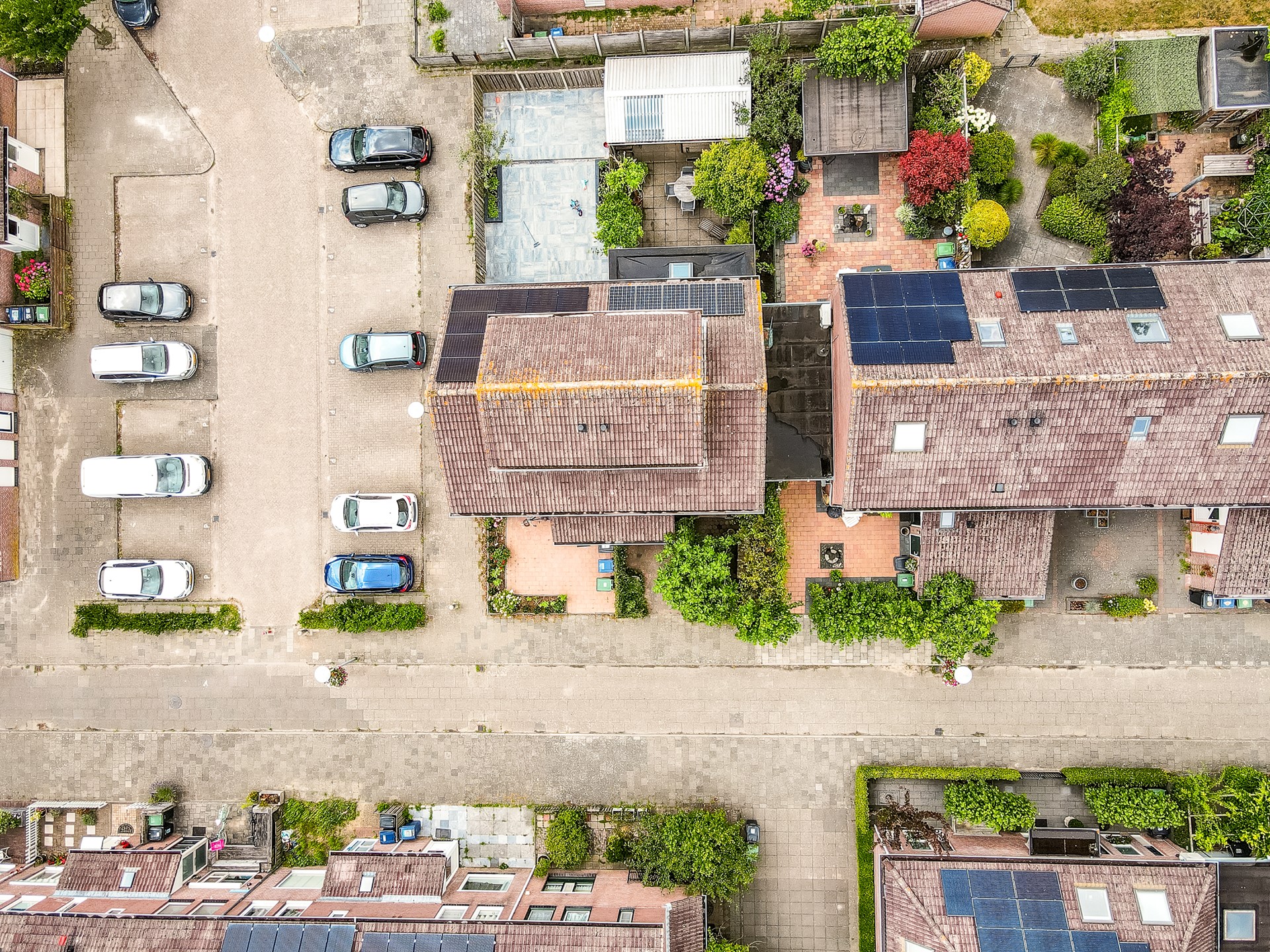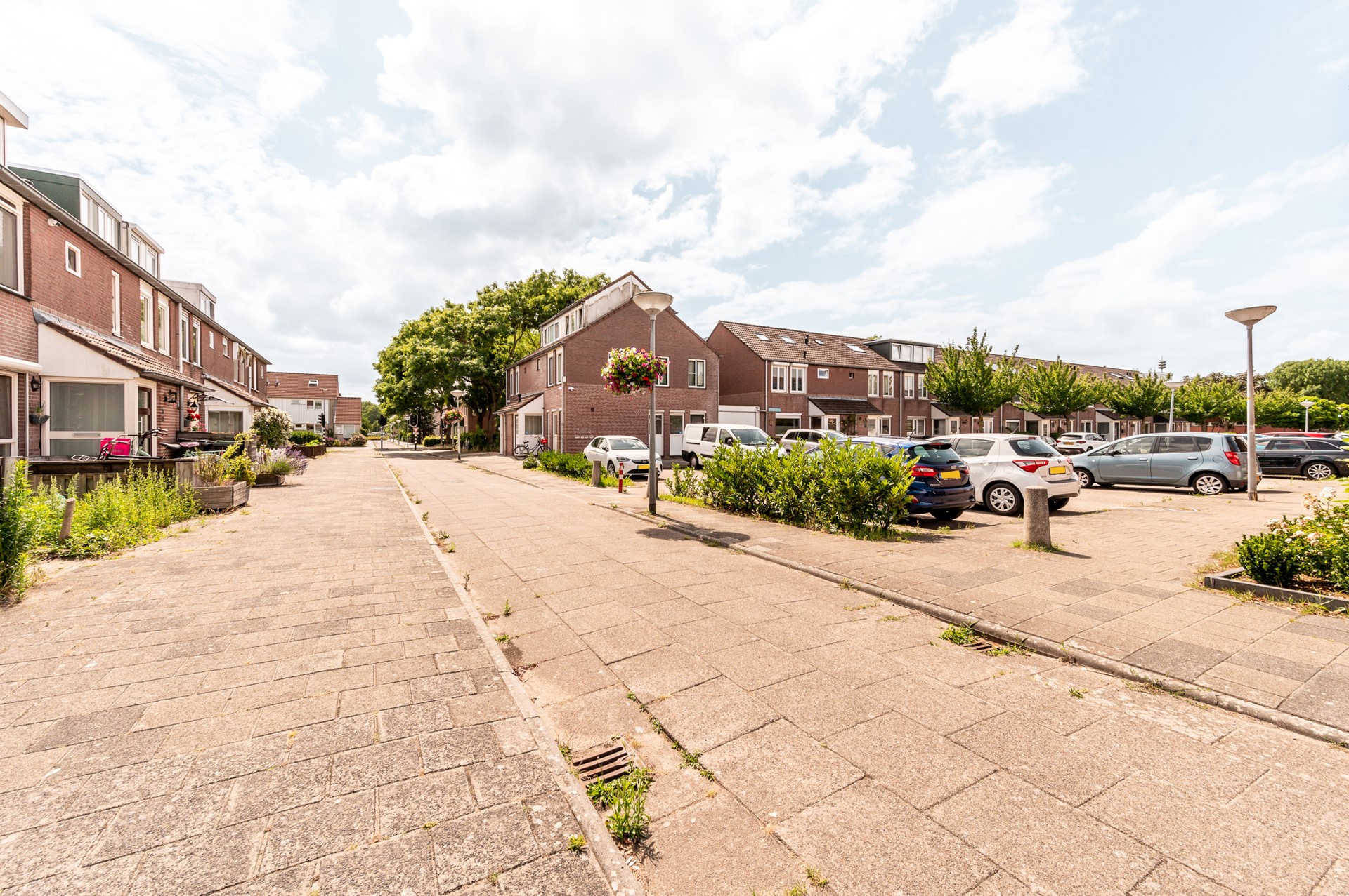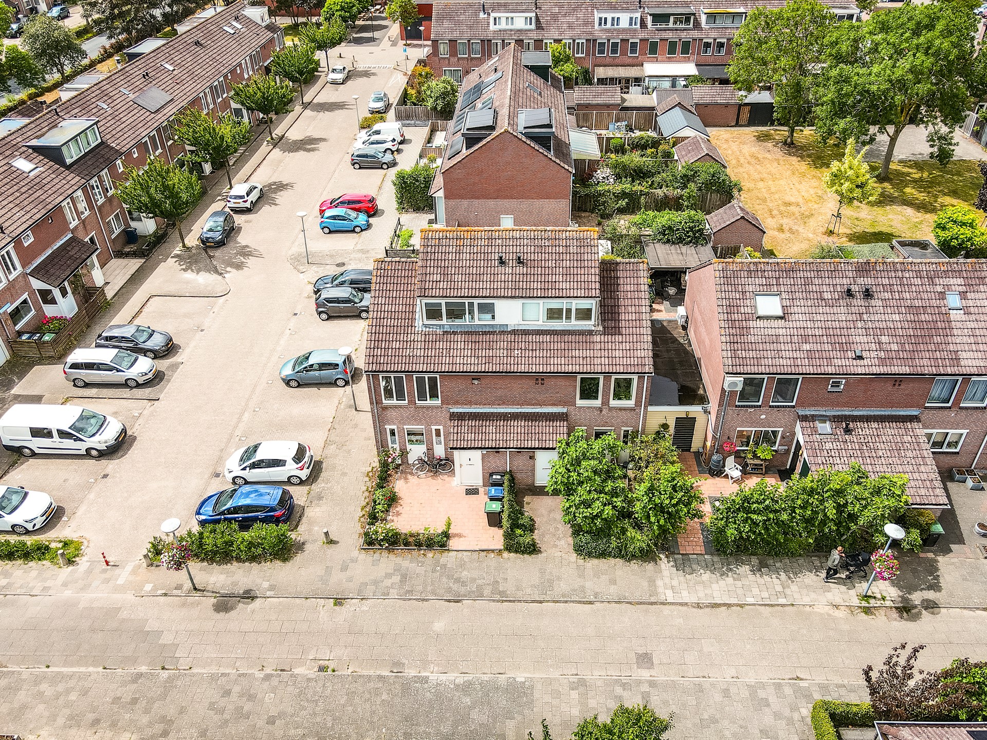 De voortuin is netjes aangelegd en biedt ruimte voor het stallen van fietsen of het plaatsen van een gezellig zitje. Dankzij het rustige straatbeeld en het groene karakter van de wijk, stap je hier elke dag met een prettig gevoel je woning binnen.
