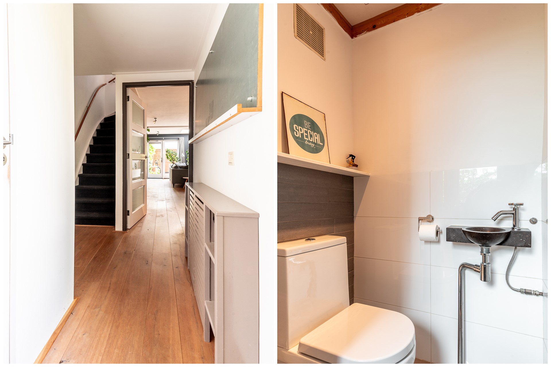 Op de eerste verdieping bevinden zich twee goed bemeten slaapkamers en een nette badkamer. De kamers zijn licht en praktisch ingedeeld, perfect bemeten en ruim opgezet. De slaapkamer aan de achterzijde van de woning kan opgedeeld worden in twee slaapkamers, voor nog meer wooncomfort. De badkamer is compleet met een inloopdouche, wastafelmeubel en tweede toilet. De kozijnen op deze verdieping zijn vervangen door onderhoudsarme kunststof kozijnen, wat bijdraagt aan duurzaamheid en isolatie.