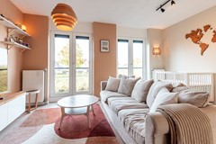 Op deze verdieping bevindt zich de royale en bijzonder lichte woonkamer met een plafondhoogte van ruim 2,66 meter. Door de grote raampartijen stroomt het daglicht rijkelijk naar binnen, waardoor de ruimte extra open en uitnodigend aanvoelt. De living biedt volop plek voor zowel een comfortabele zithoek als een ruime eettafel, ideaal voor gezellige diners of lange avonden ontspannen op de bank.